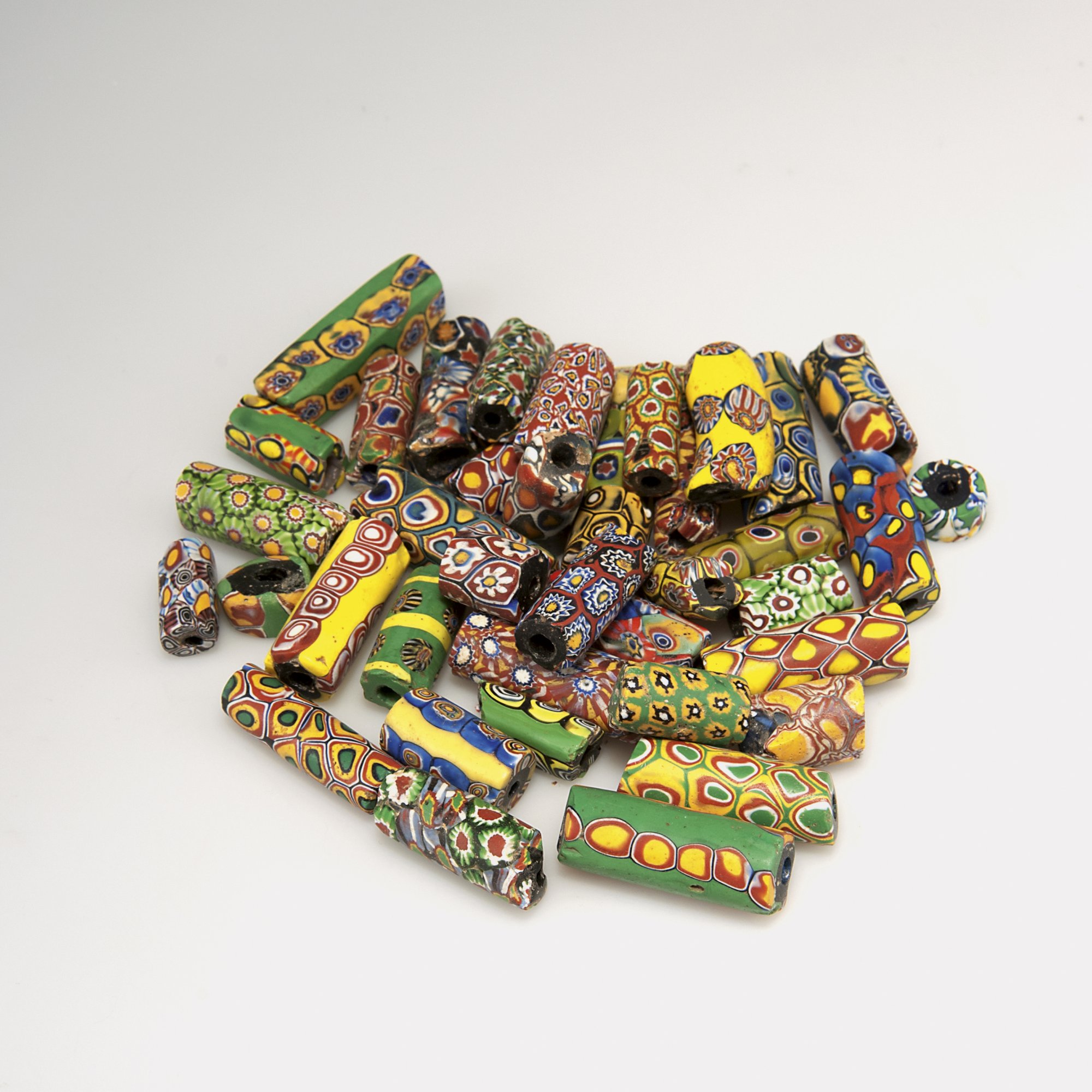 40 mittlere und größere Millefiori Glasperlen in unterschiedlichen Mustern.