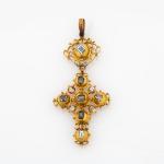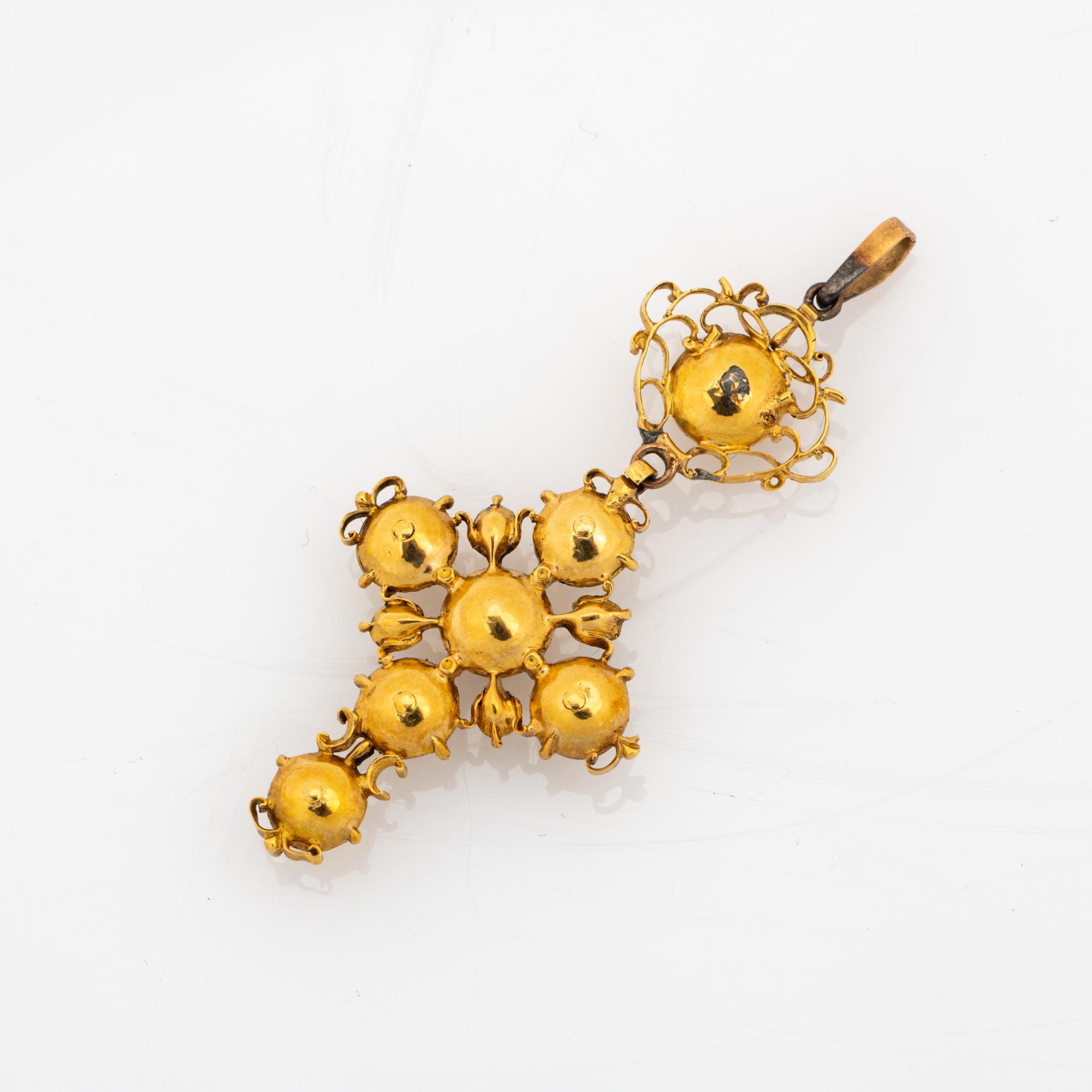 Gelbgold 585 und Feingold (getestet), elf Diamanten im historischen Tafelschliff, mit Silberfolie unterlegt.