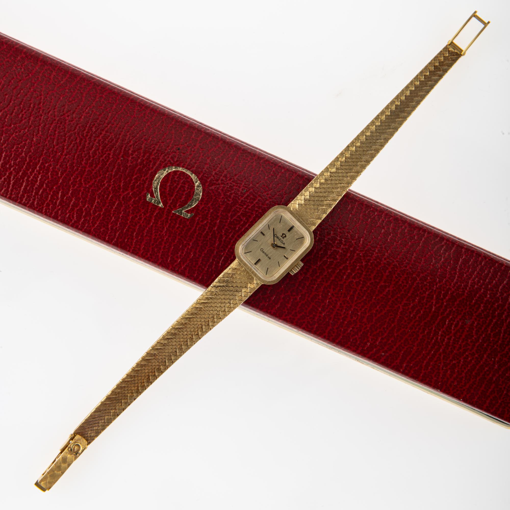 Gelbgold 750, goldfarbenes Zifferblatt.