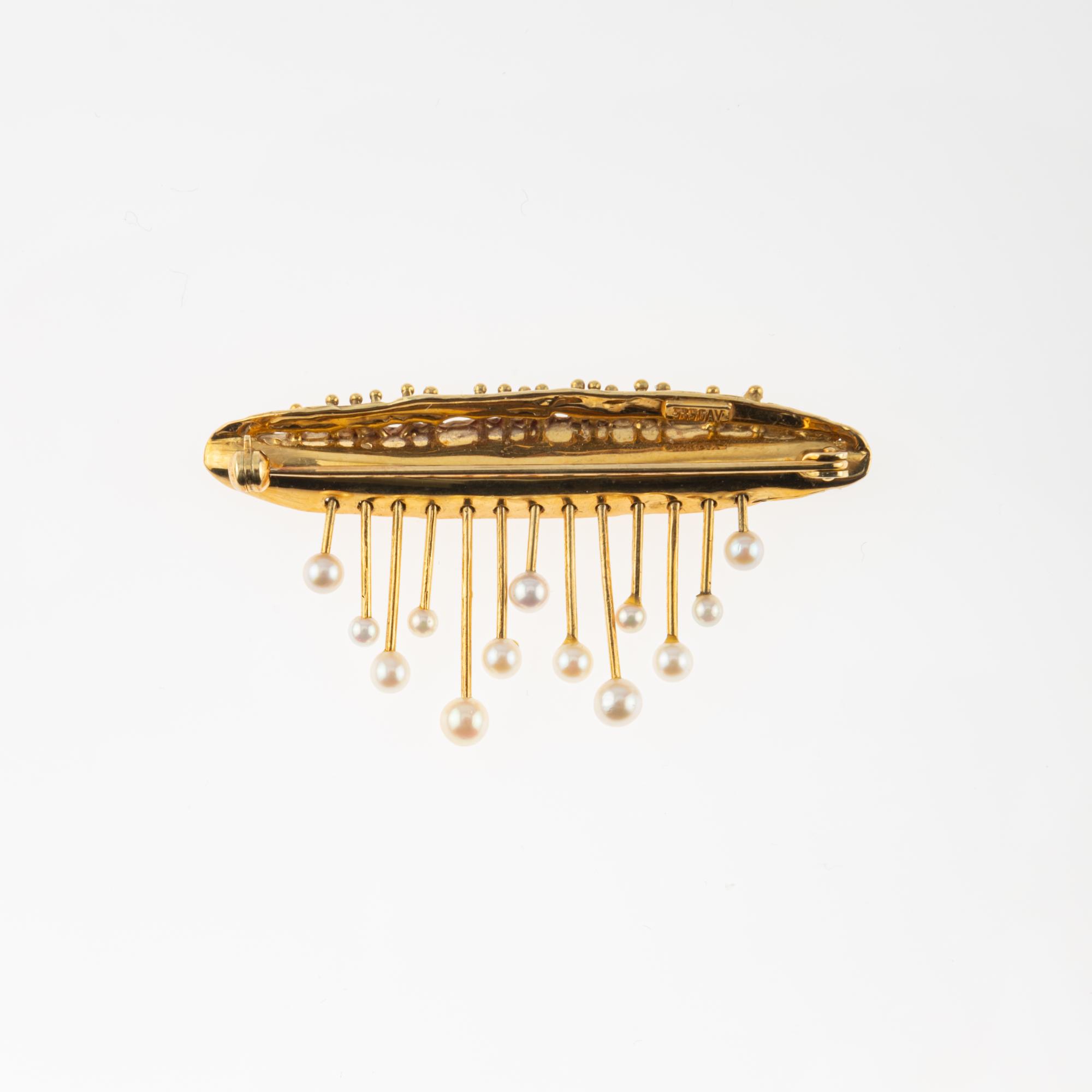 Gelbgold 585, 13 Zuchtperlen.