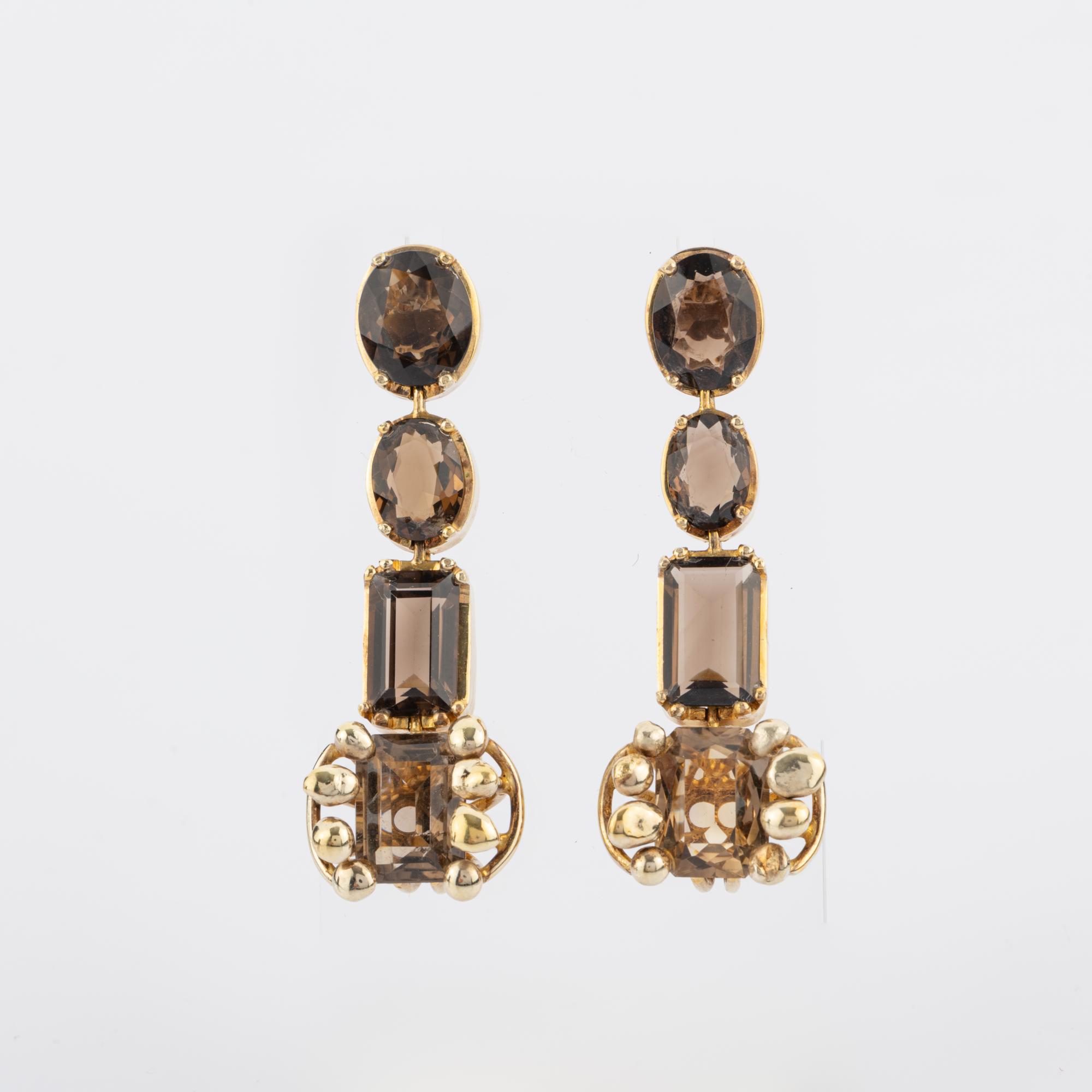 Vintage Ohrgehänge mit Rauchquarz, 1980er Jahre