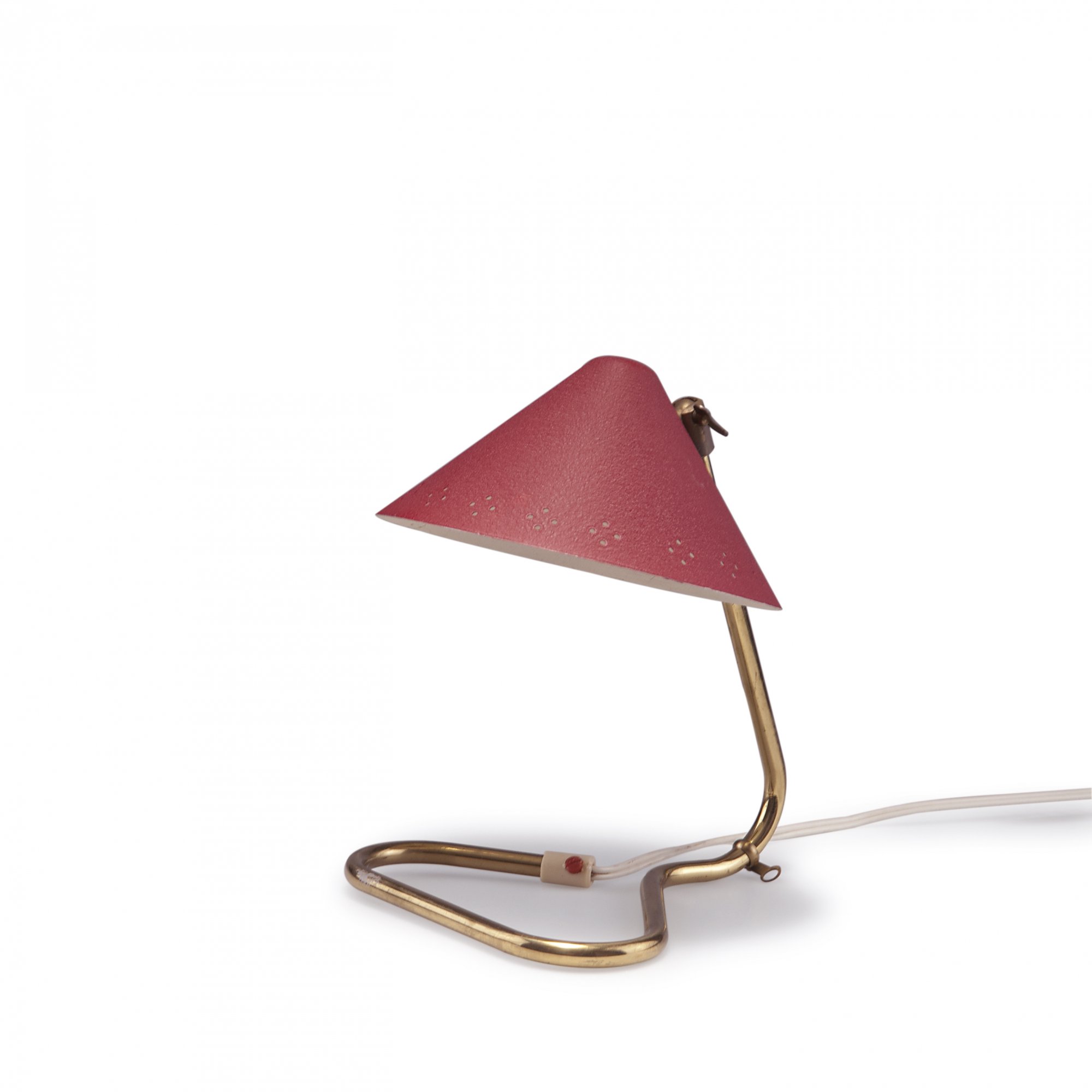 Messingrohr, Aluminiumblech, perforiert, rot lackiert.