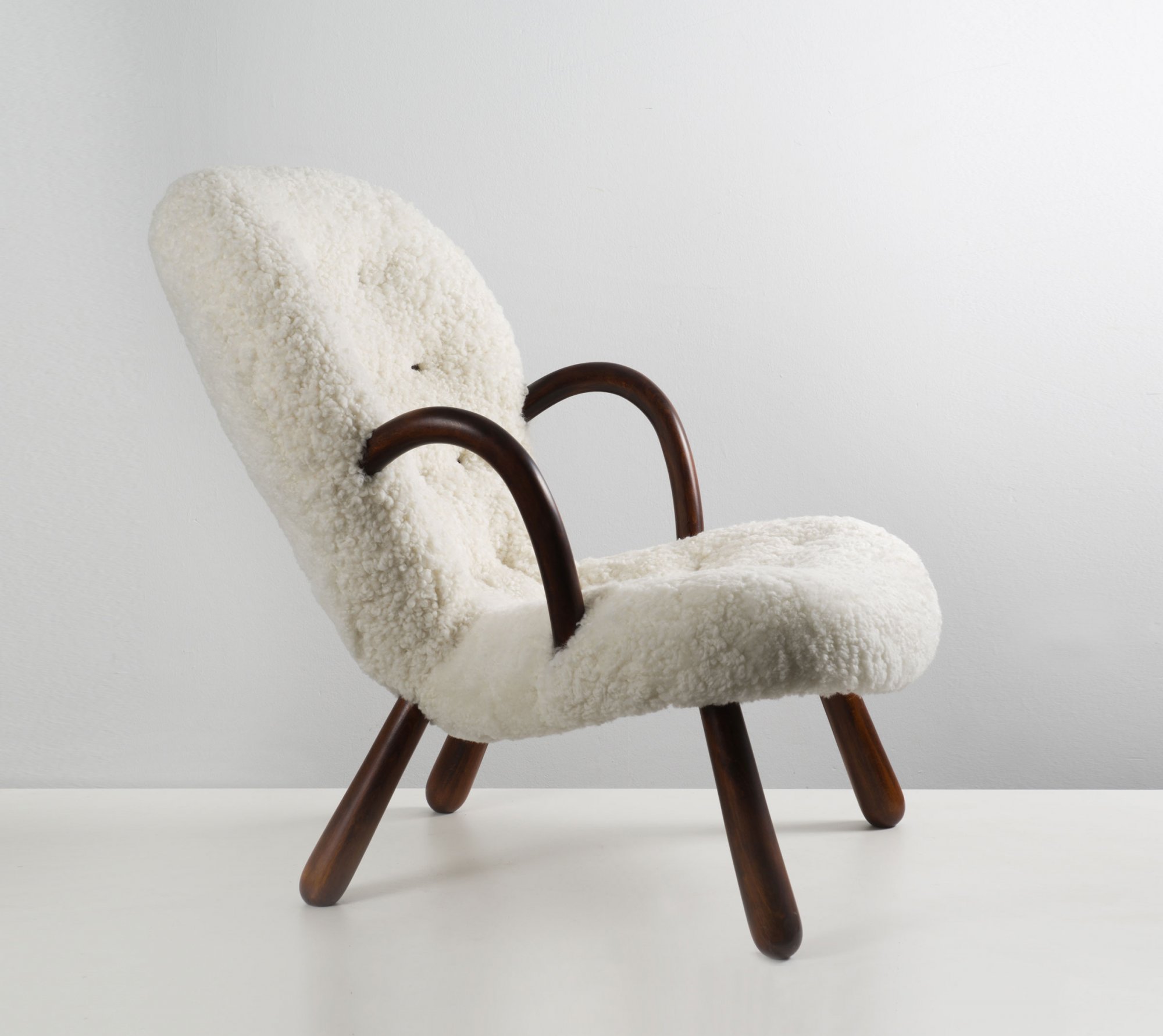 Dieser Sessel wurde in der Vergangenheit regelmäßig als Entwurf von Viggo Boesen oder Martin Olsen beschrieben. Erst 2013 konnte Bruun Rasmussen, Kopenhagen, die genaue Urheberschaft ermitteln. Es steht nun einwandfrei fest das dieser Sessel 1944 von Philip Arctander entworfen wurde. Dieses Exemplar wurde fachgerecht restauriert und mit einem neuen Schaffellbezug versehen.