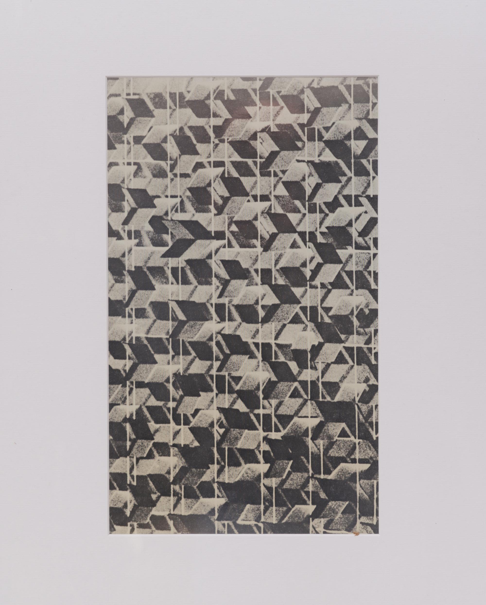 Karton an den vier Rändern im Passepartout montiert mit circa 3-4 cm langen Klebestreifen.