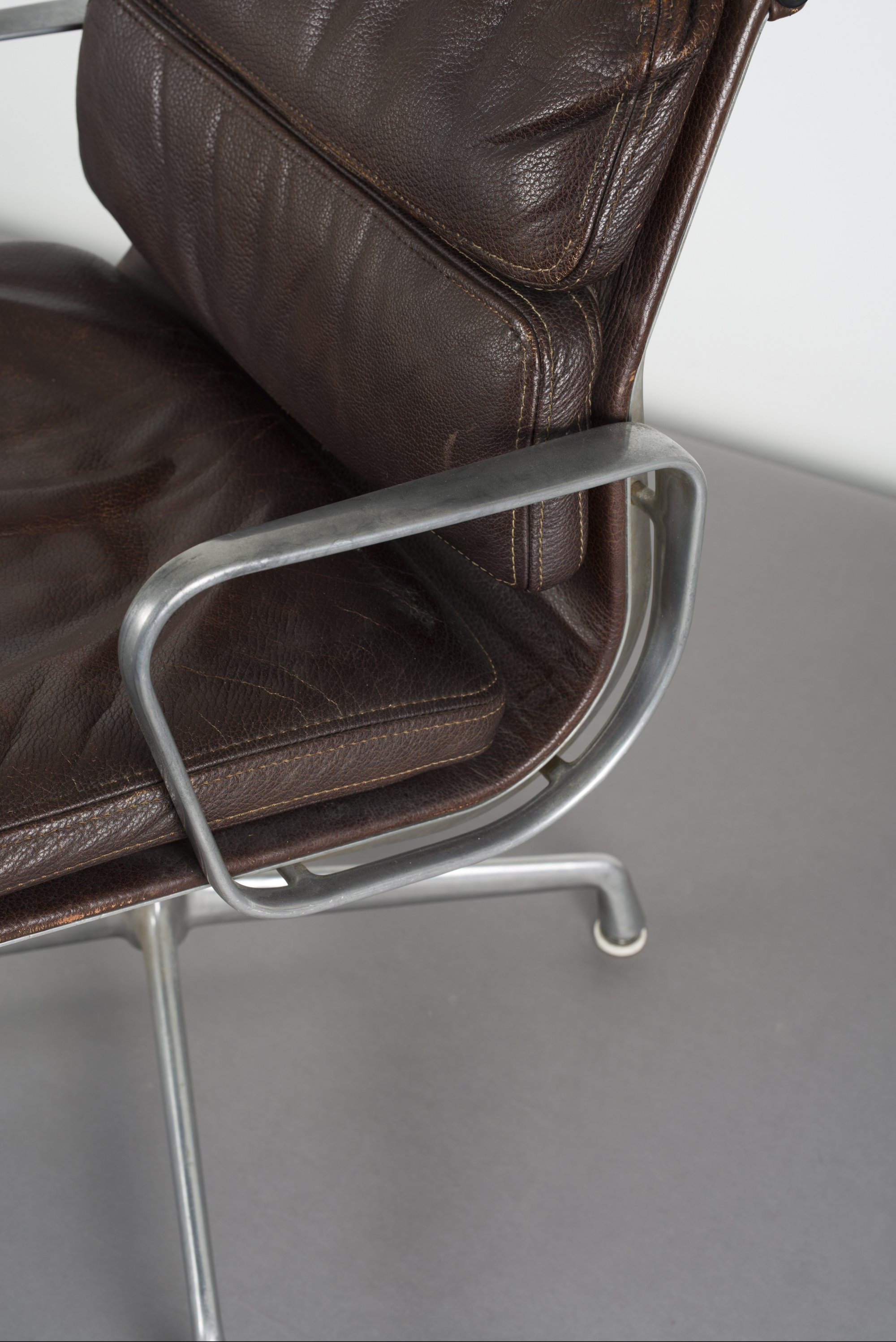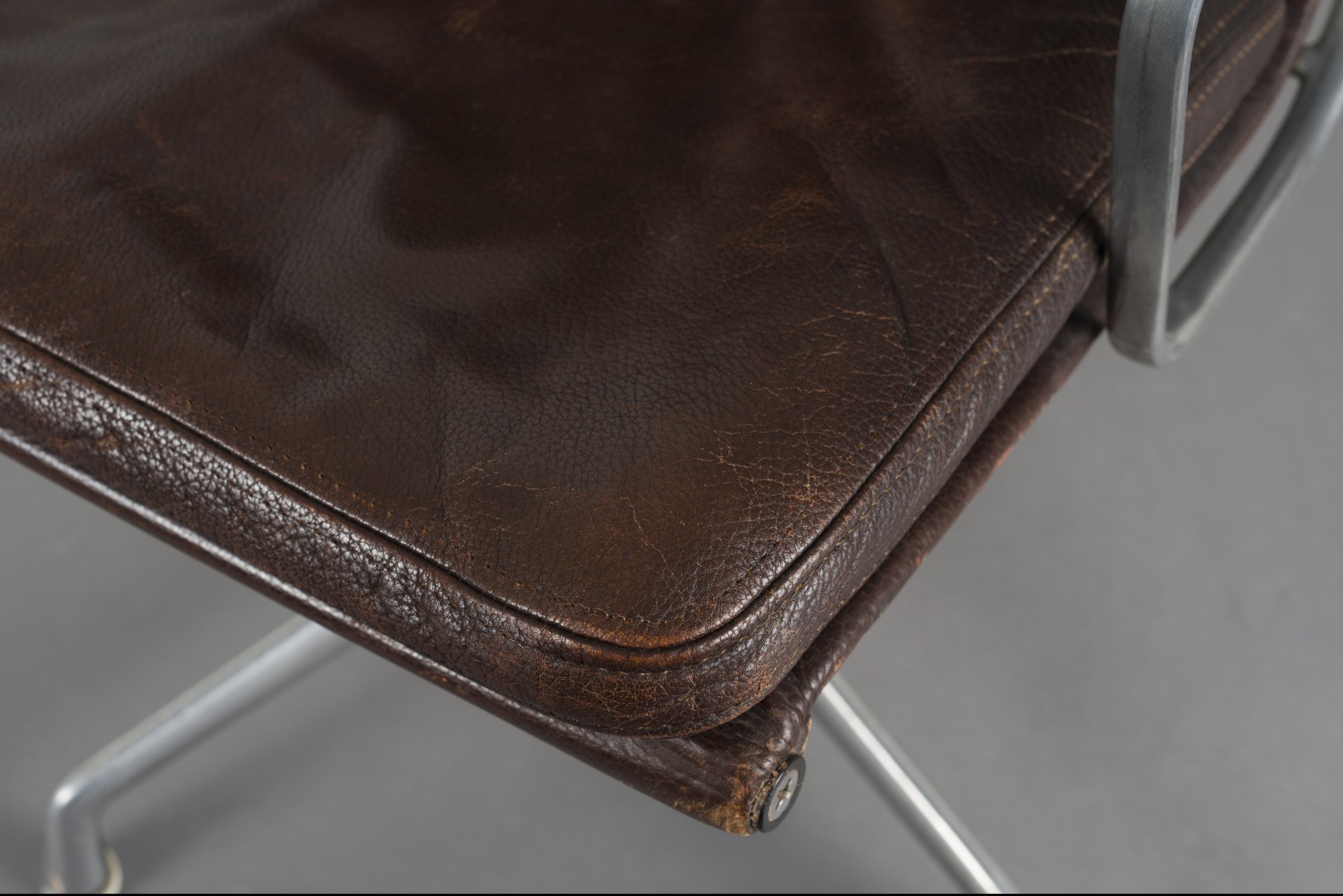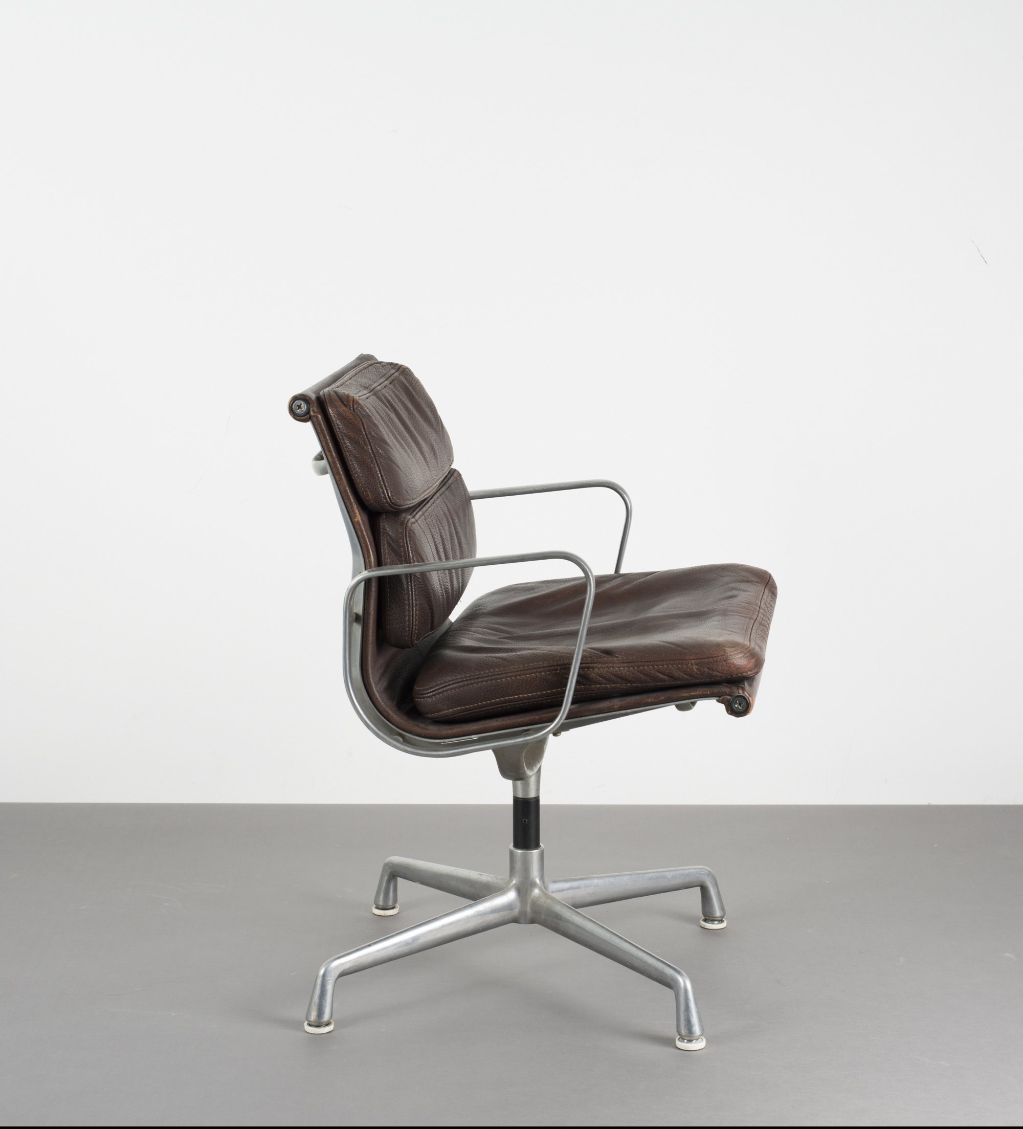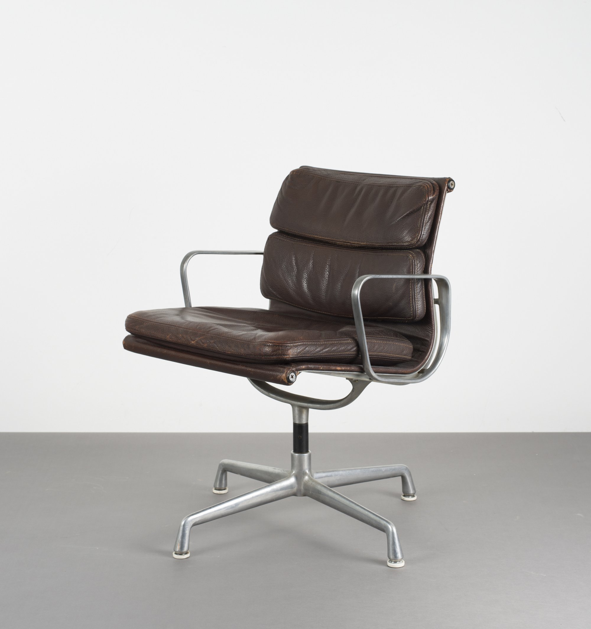 Aluminiumguß, Stahlrohr, braunes Leder.