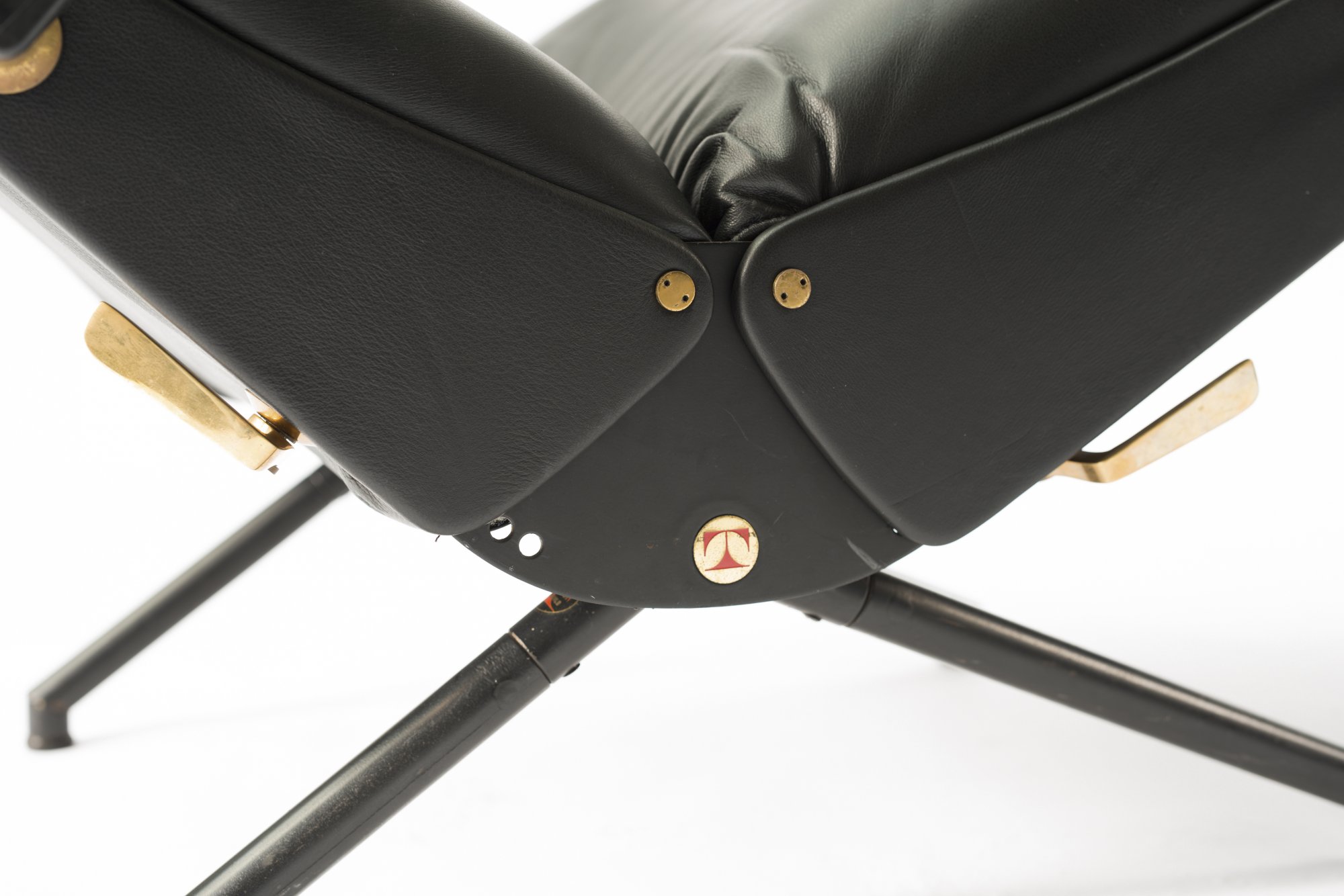Stahlrohr, schwarz lackiert, Messing, schwarzes Leder.