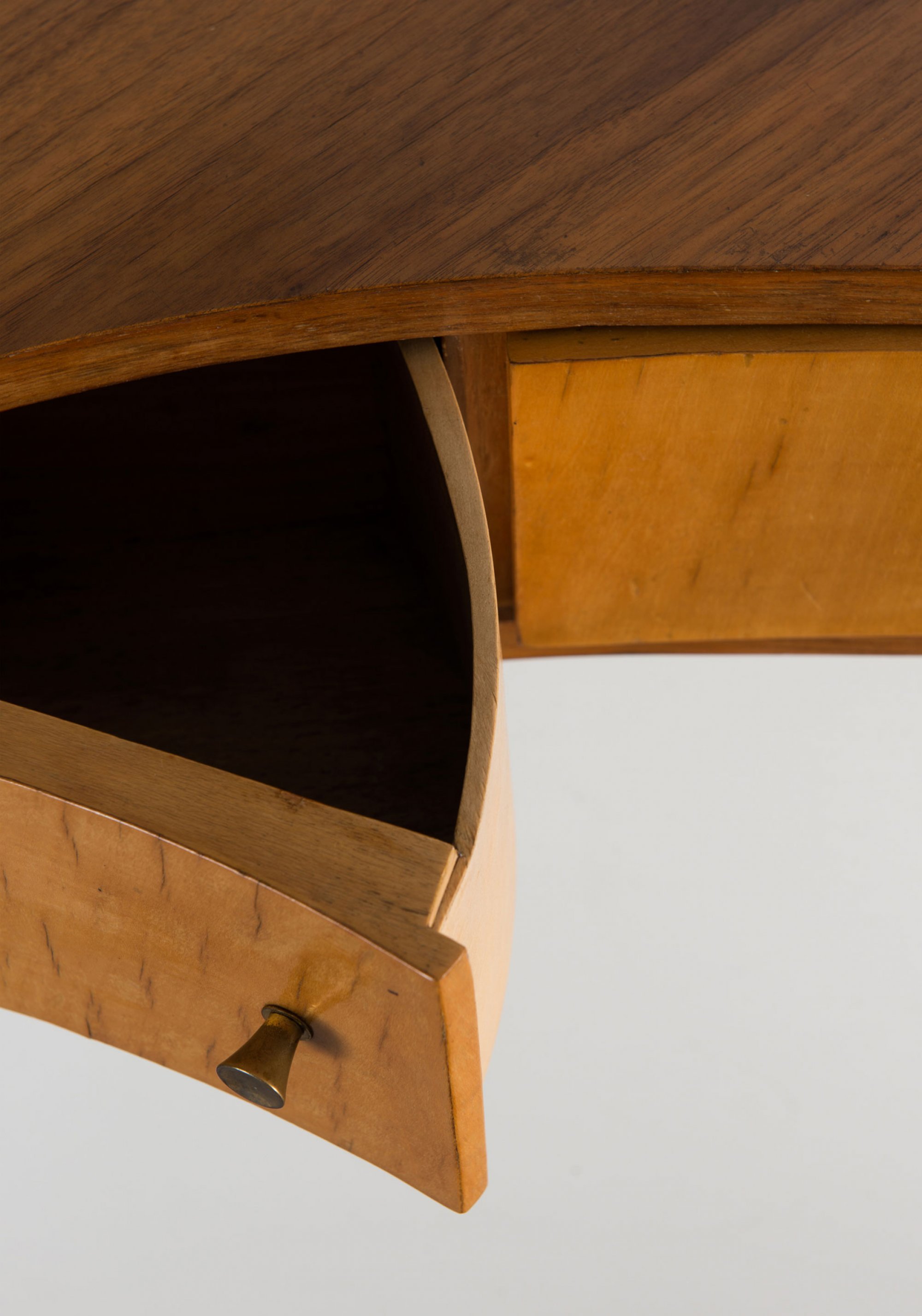 Holzkastenkonstruktion mit Nußholz- und Ahornfurnier, Messingbeschläge.