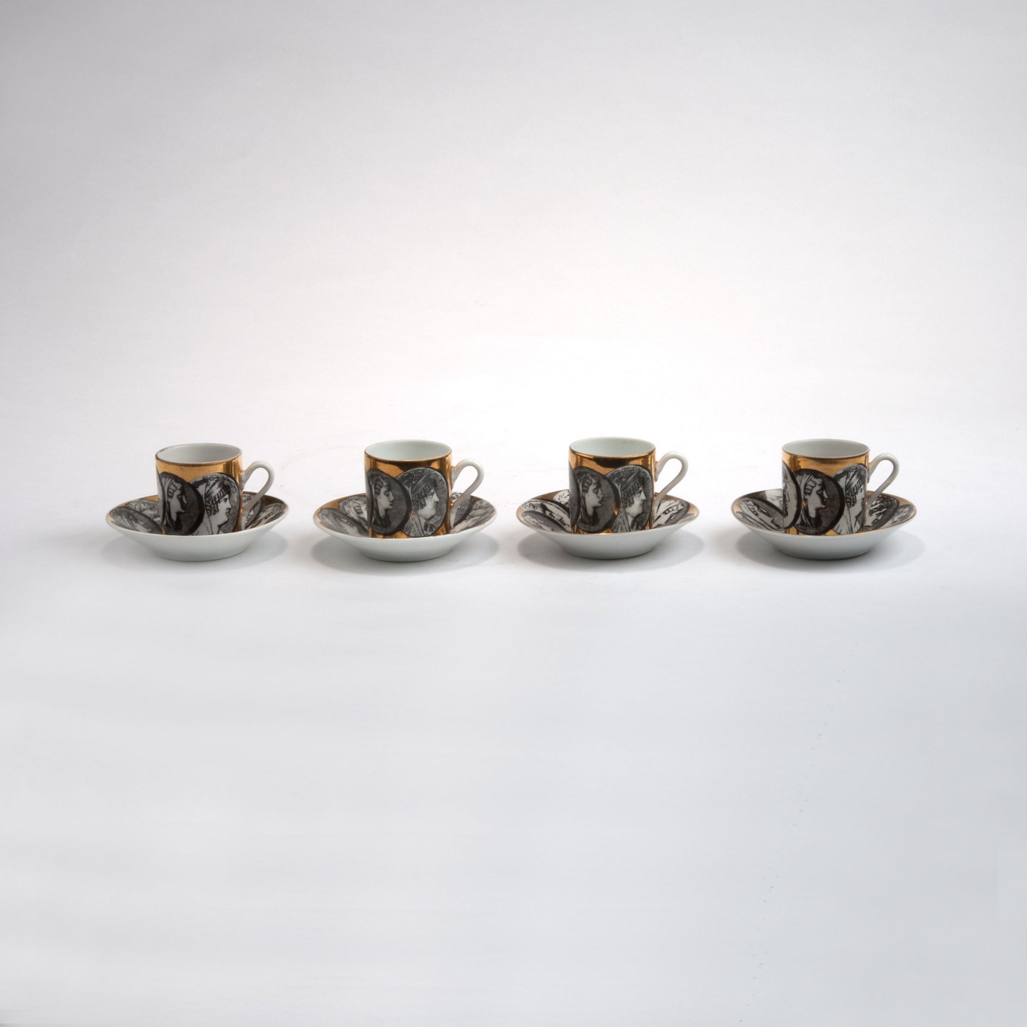 Vier Mokkatassen mit Untertellern 'Cammei', 1950er Jahre
