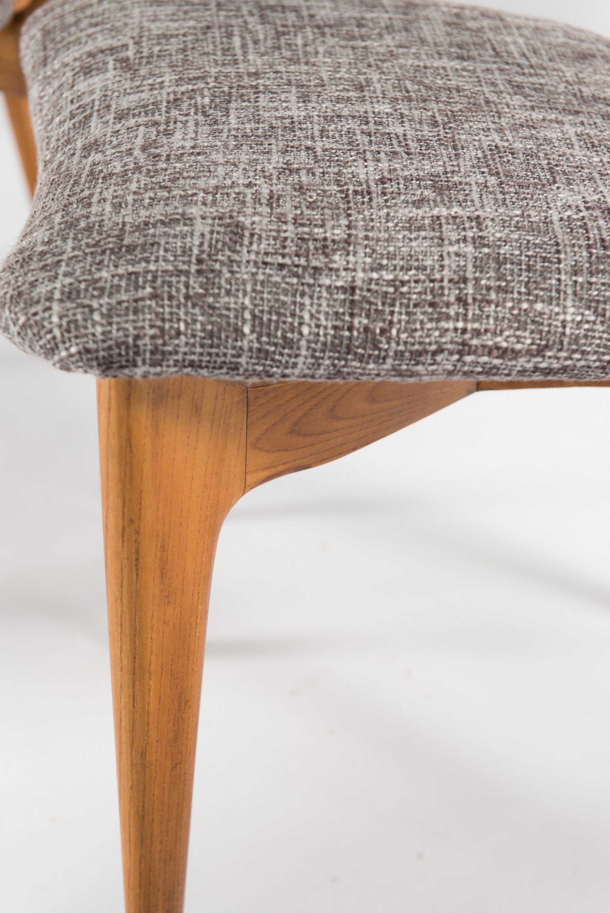 Eschenholz, grauer Textilbezug.