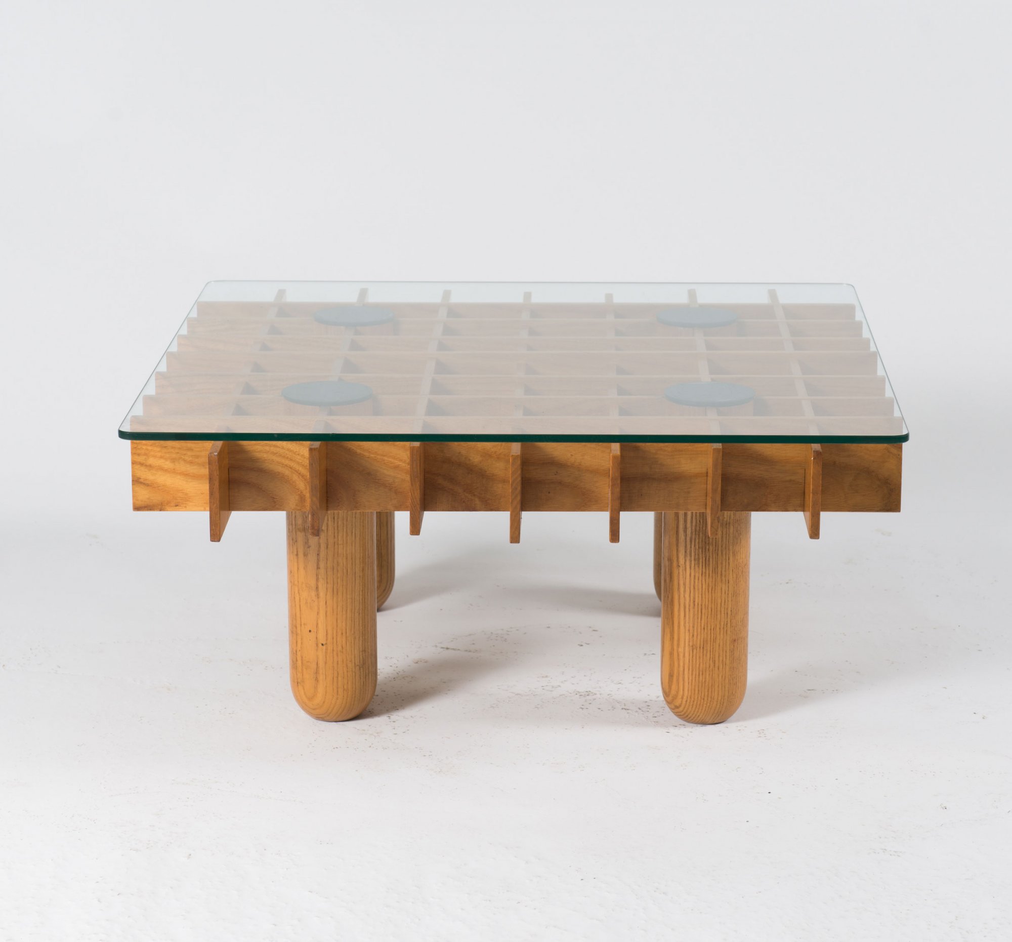Eschenholz, farbloses Glas.