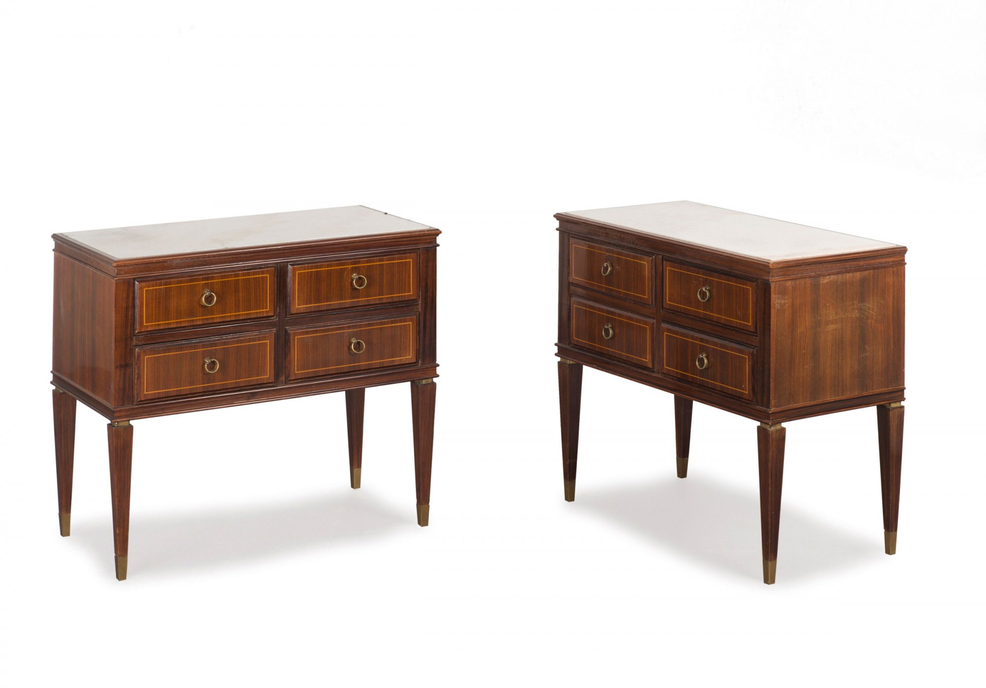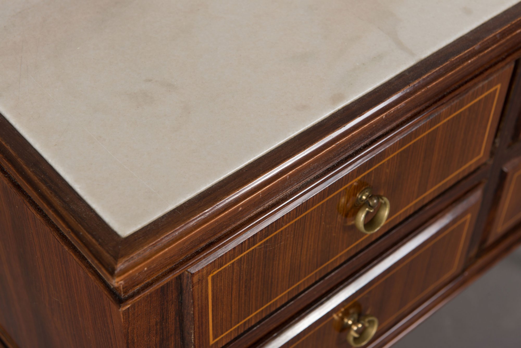 Holzkastenkonstruktion mit Palisanderfurnier, Zitronenholz, Messing, Marmor.
