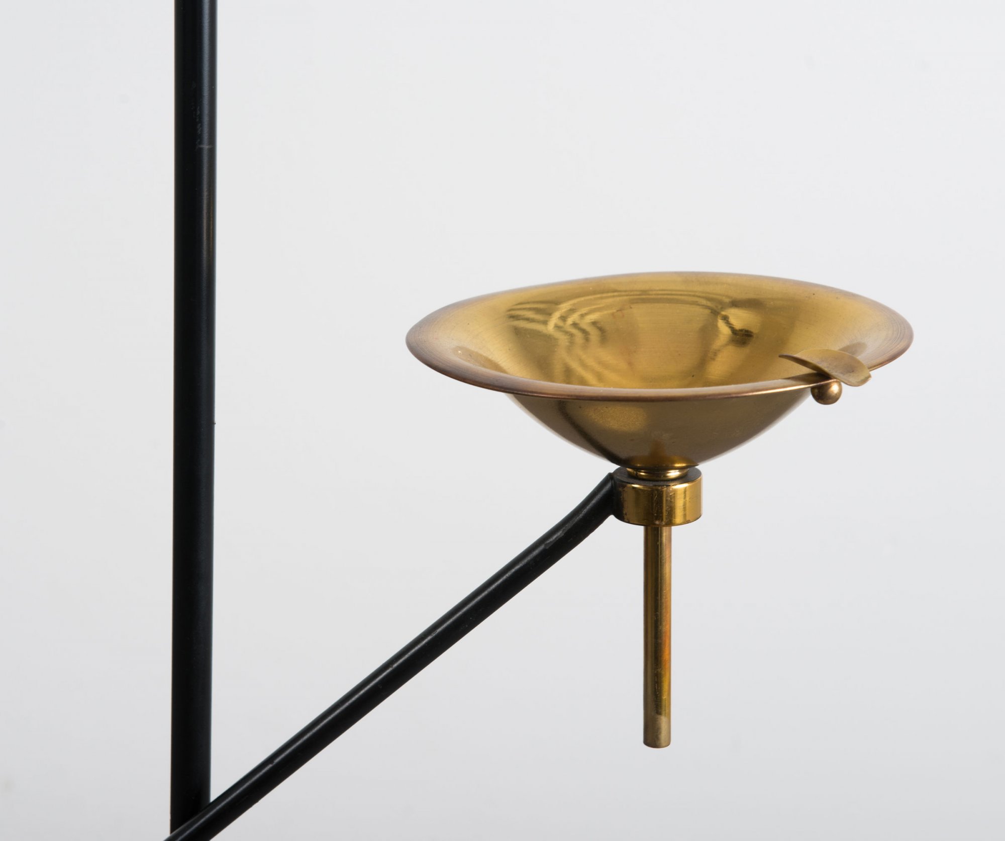 Metallstäbe, schwarz lackiert, Messingblech, weißes Glas.