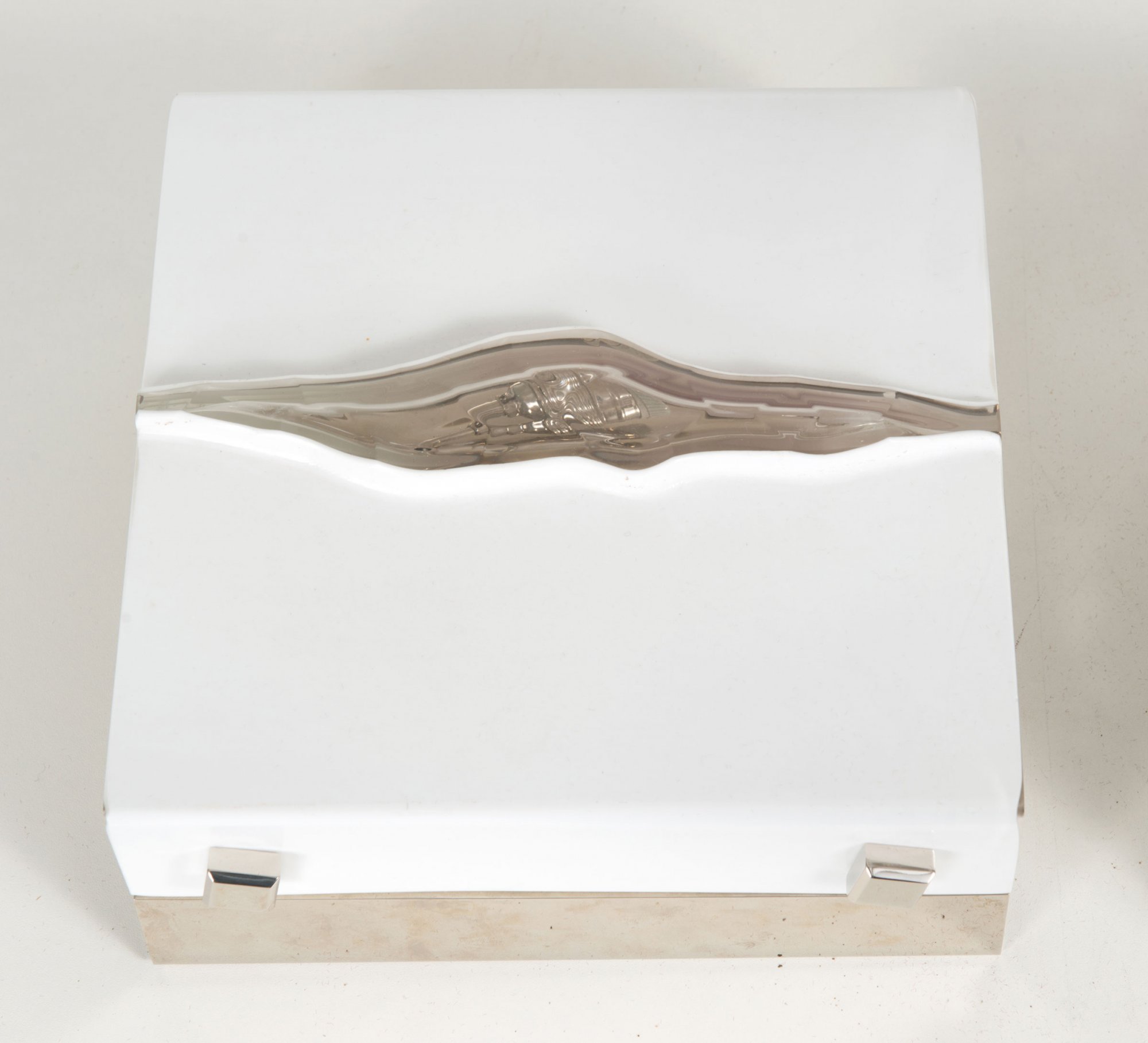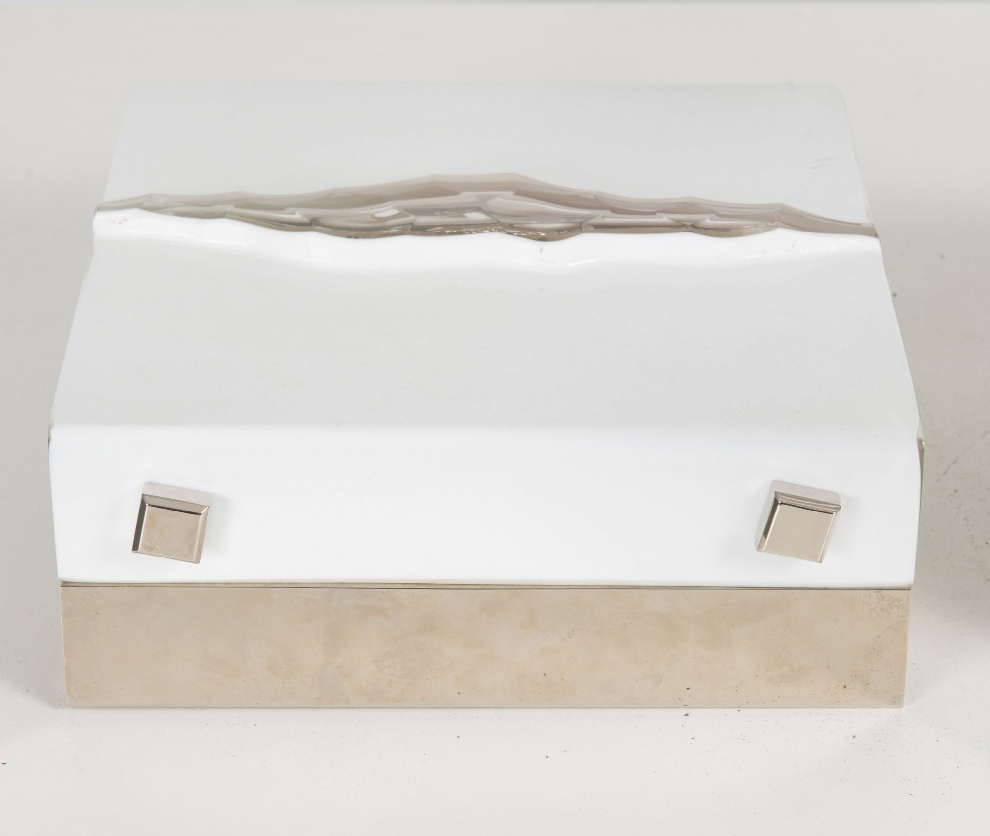 Farbloses und opalweißes Glas, Stahlblech, verchromt.