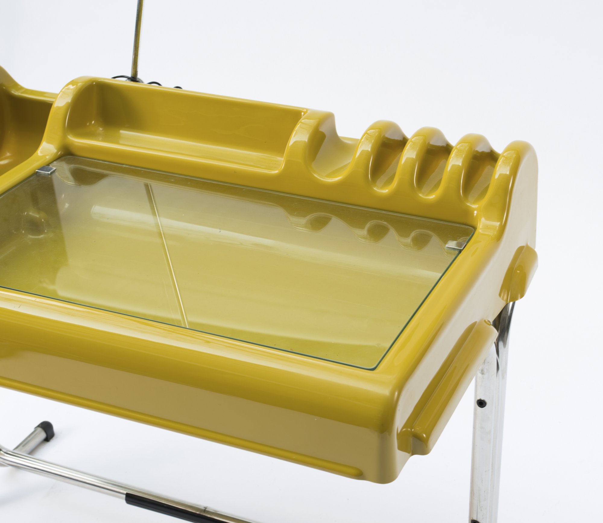 Olivgrüner ABS-Kunststoff, Stahlrohr, verchromt.