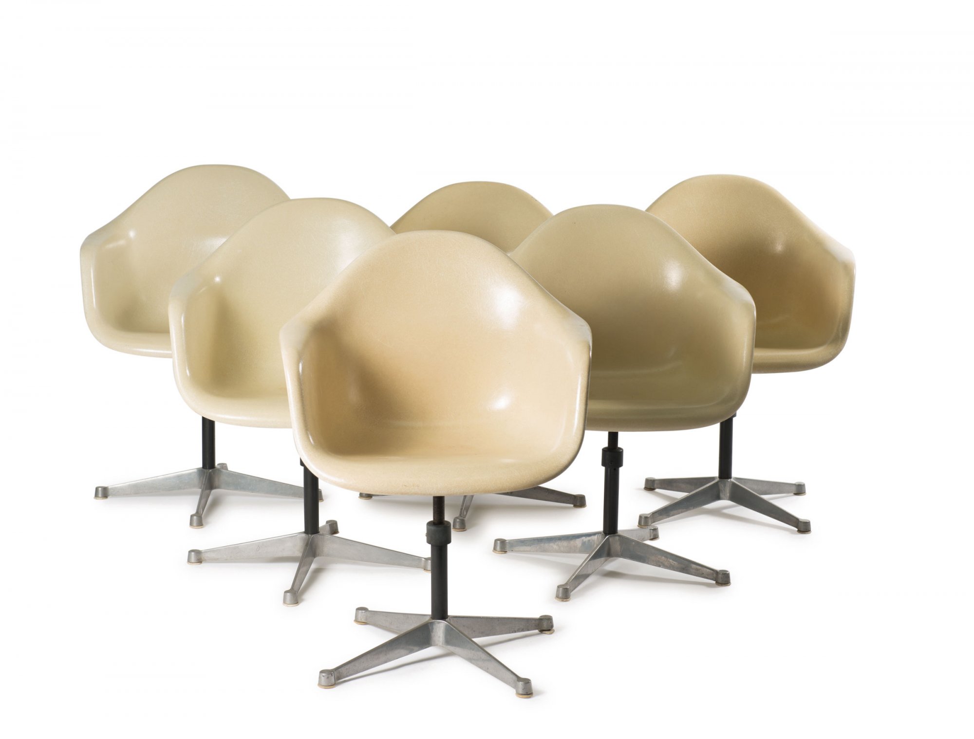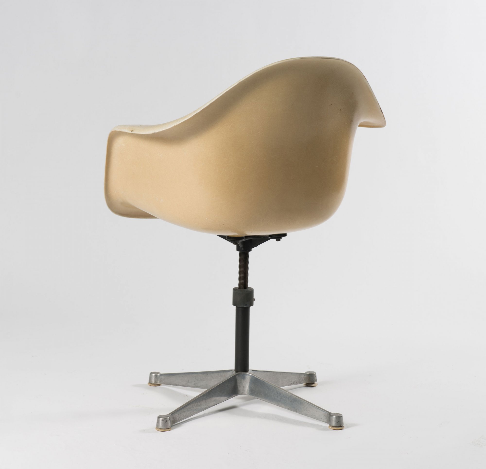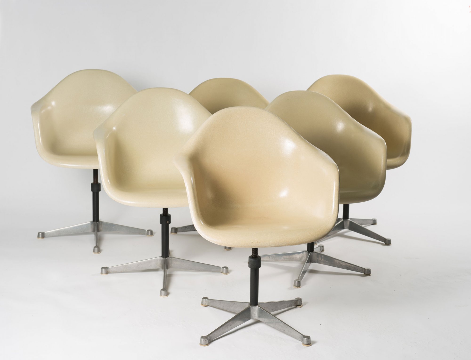 Aluminiumguß, Stahlrohr, schwarz lackiert, beigefarbene Kunststoffschalen, glasfaserverstärkt.