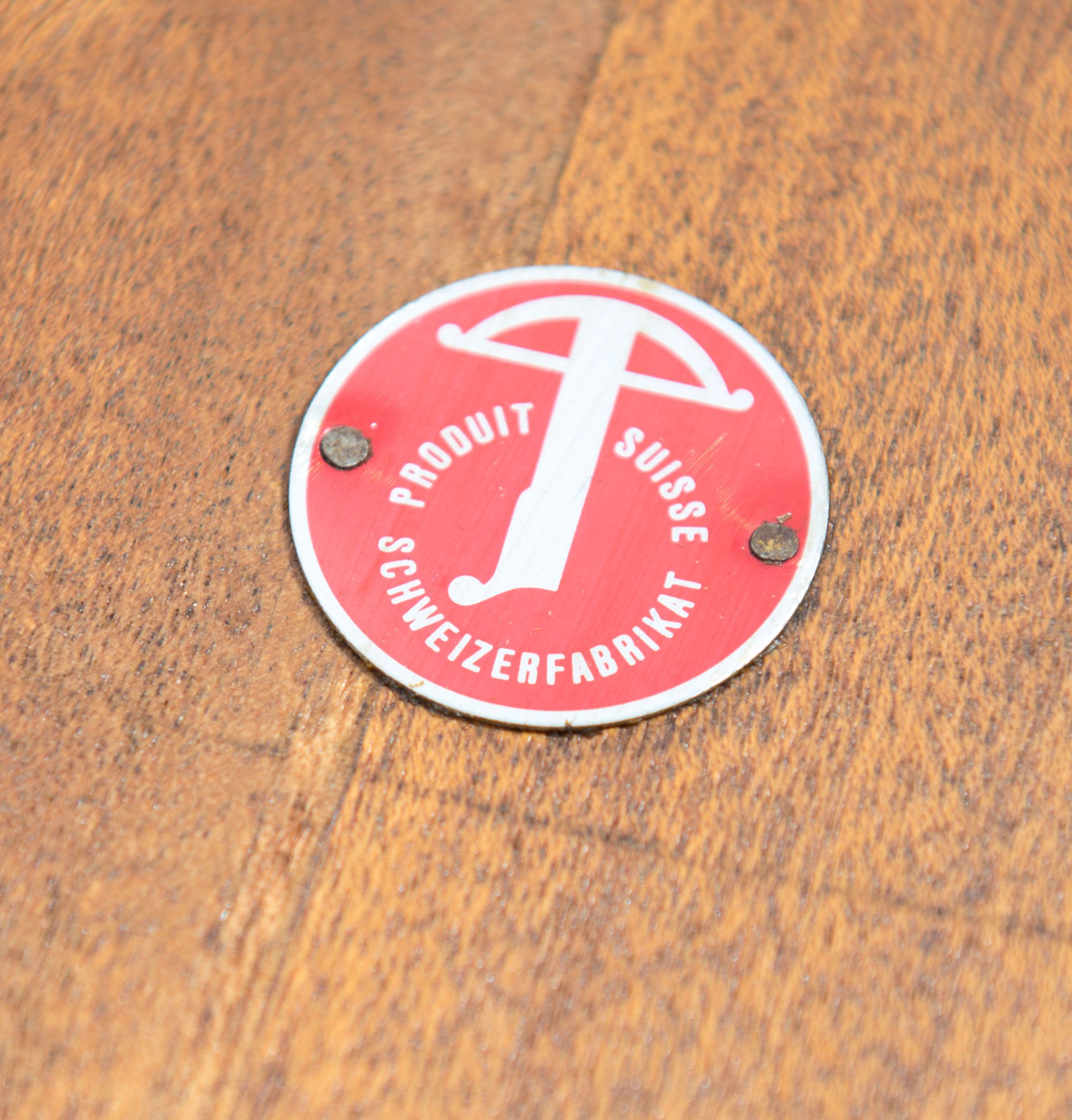 Bez.: Metalletikett PRODUIT SUISSE SCHWEIZER FABRIKAT.