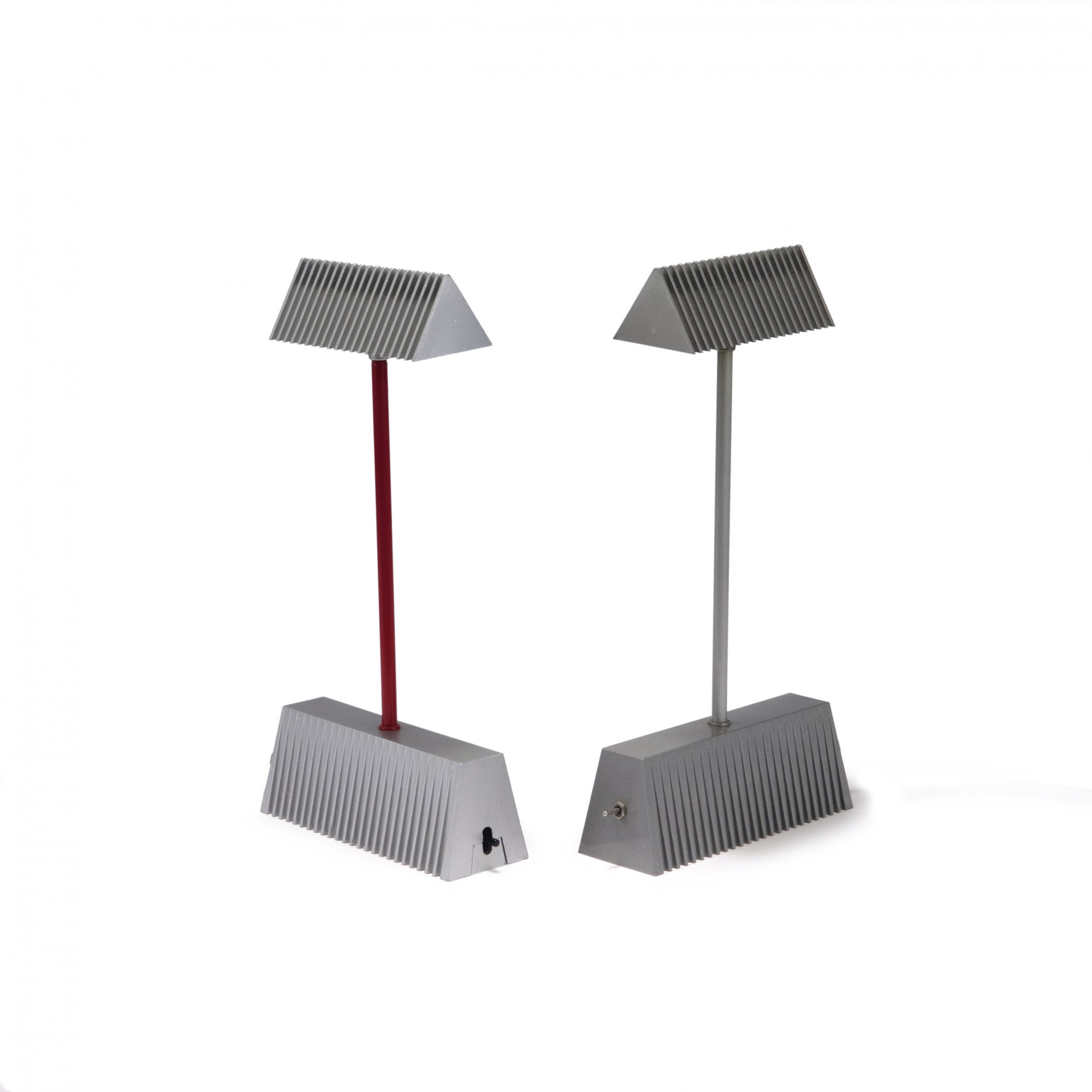 Aluminiumblech, Metallrohr, rot bzw. grau lackiert.