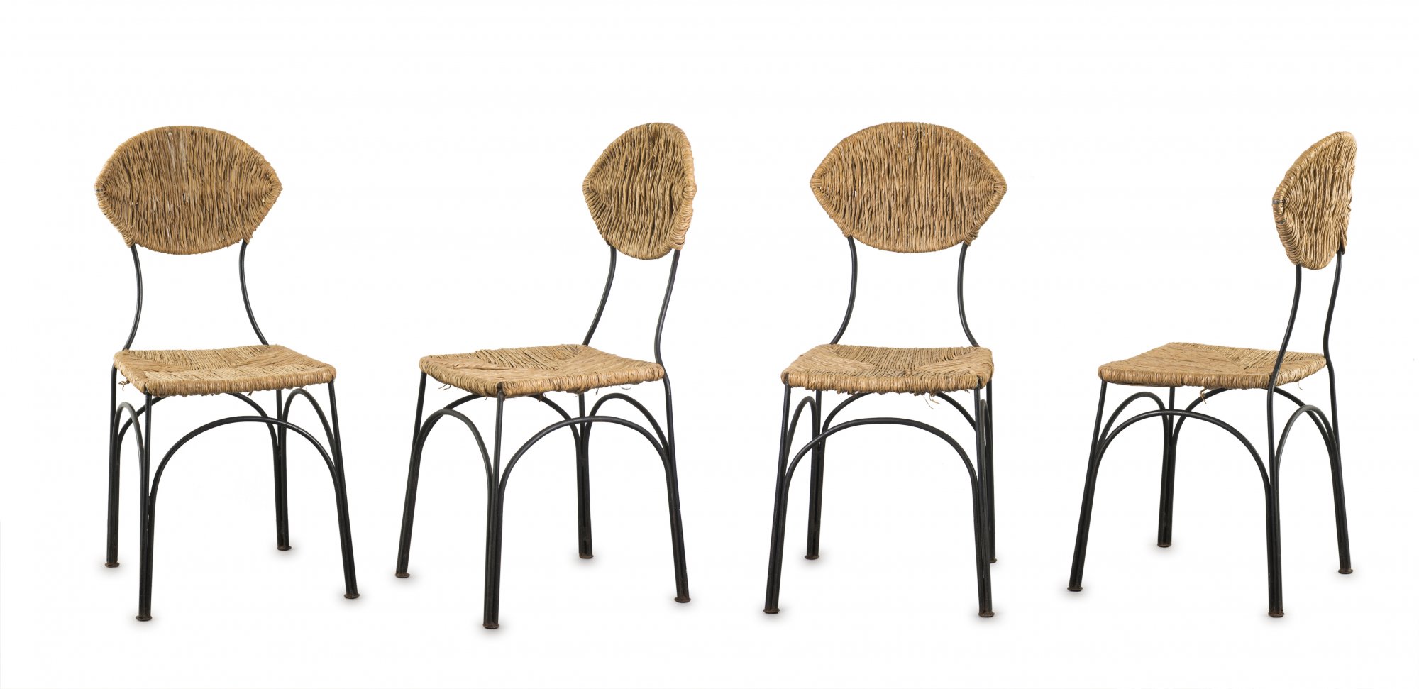 Metallstäbe, anthrazitgrau lackiert, Bananenfasergeflecht.