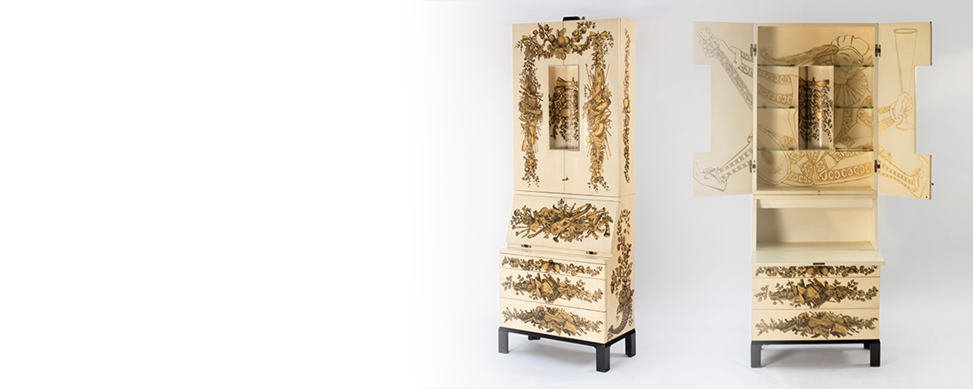 Highlight des Auktion war der Sekretärschrank ‚Panoplie‘, eine Zusammenarbeit von Gio Ponti und Piero Fornasetti, er geht in den Besitz eines Museums über.