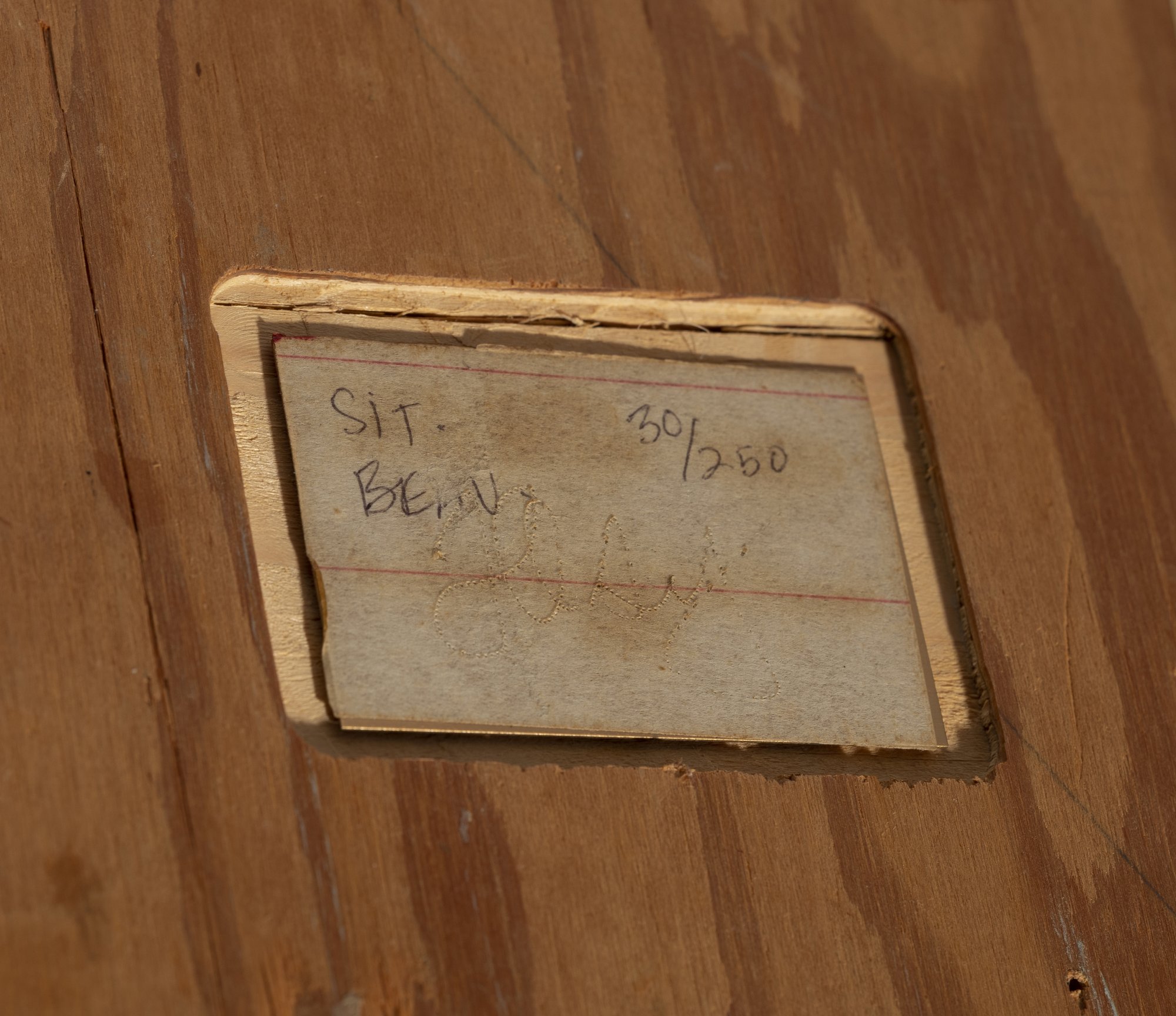 Bez.: Papierschablone auf Metallplakette, handschriftlich: SIT. BEAV 30/250, Unterschrift durchgepaust.