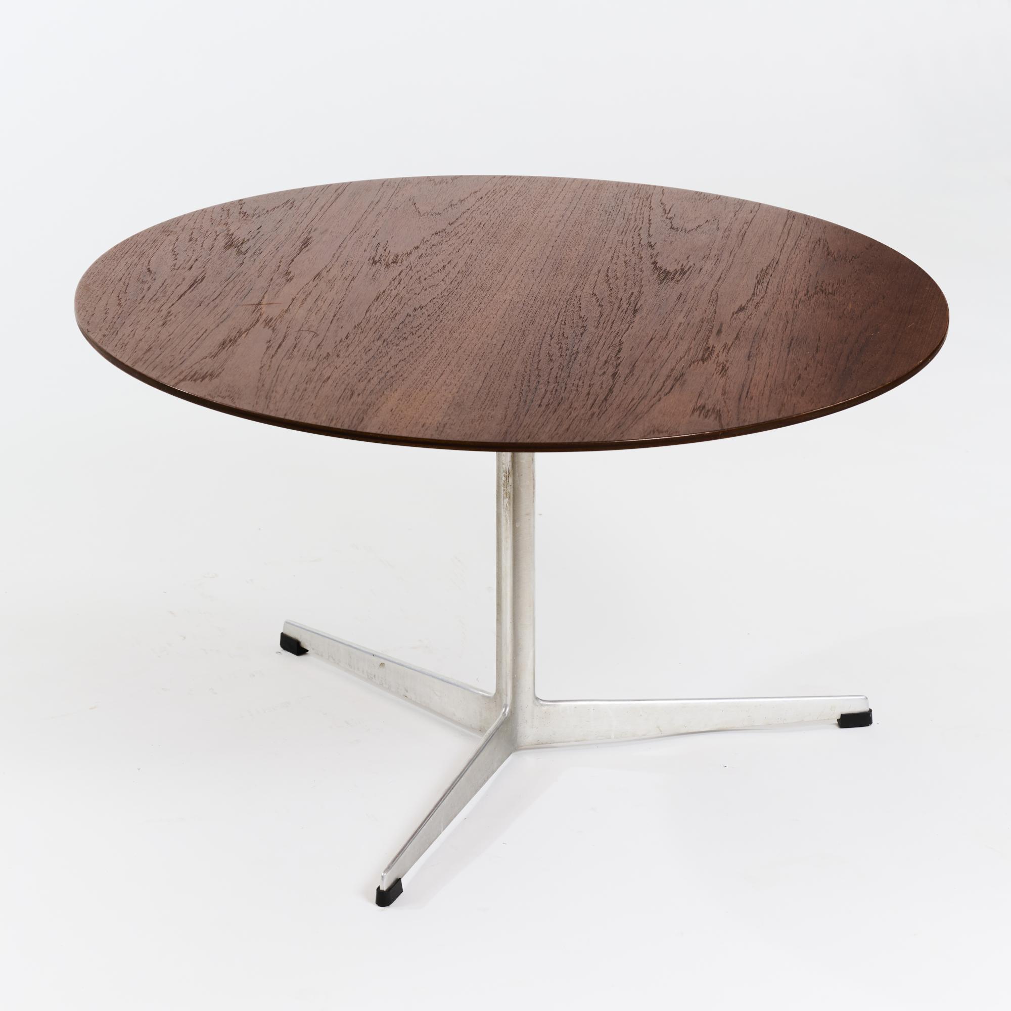 Tischlerplatte mit Teakholzfurnier, Aluminiumguss.