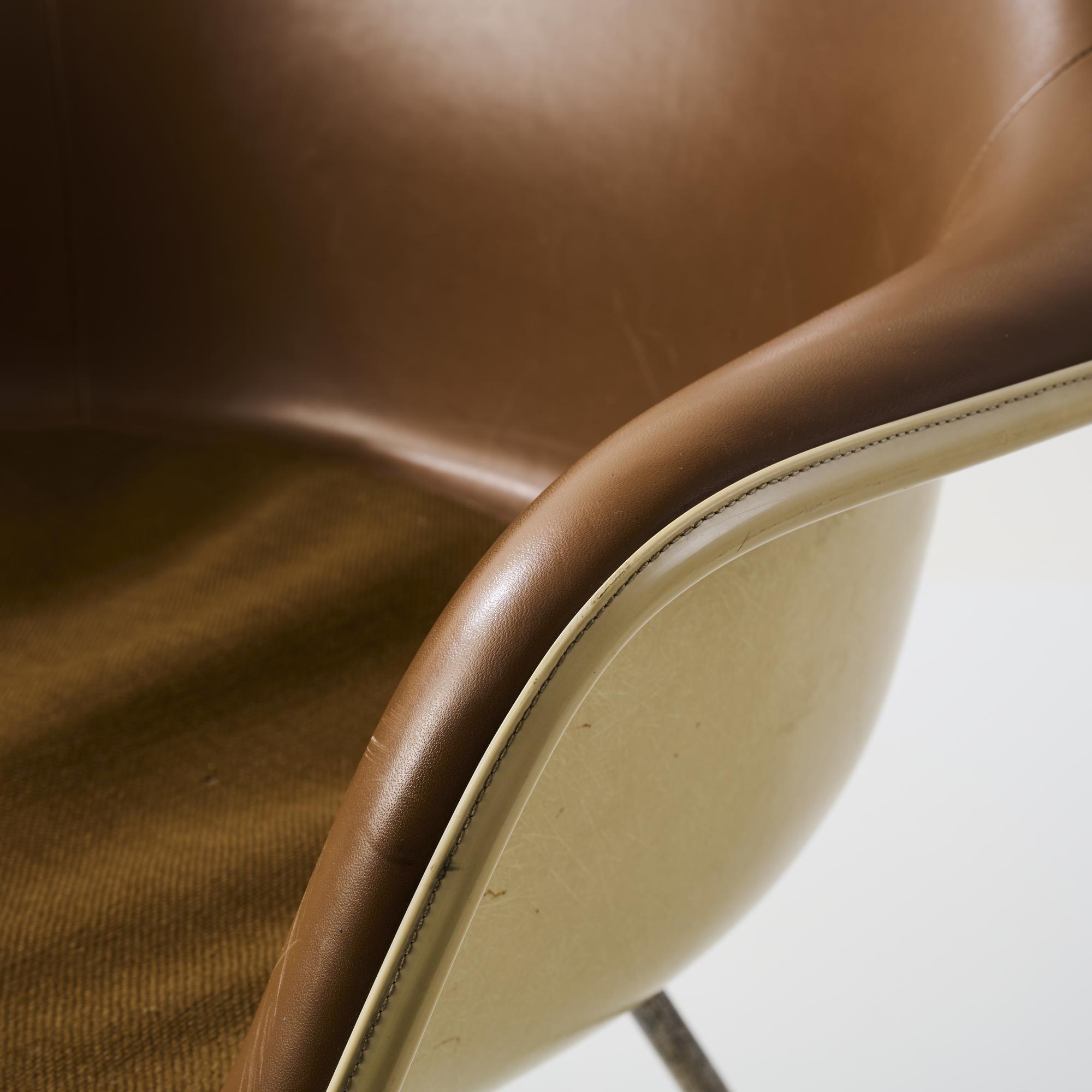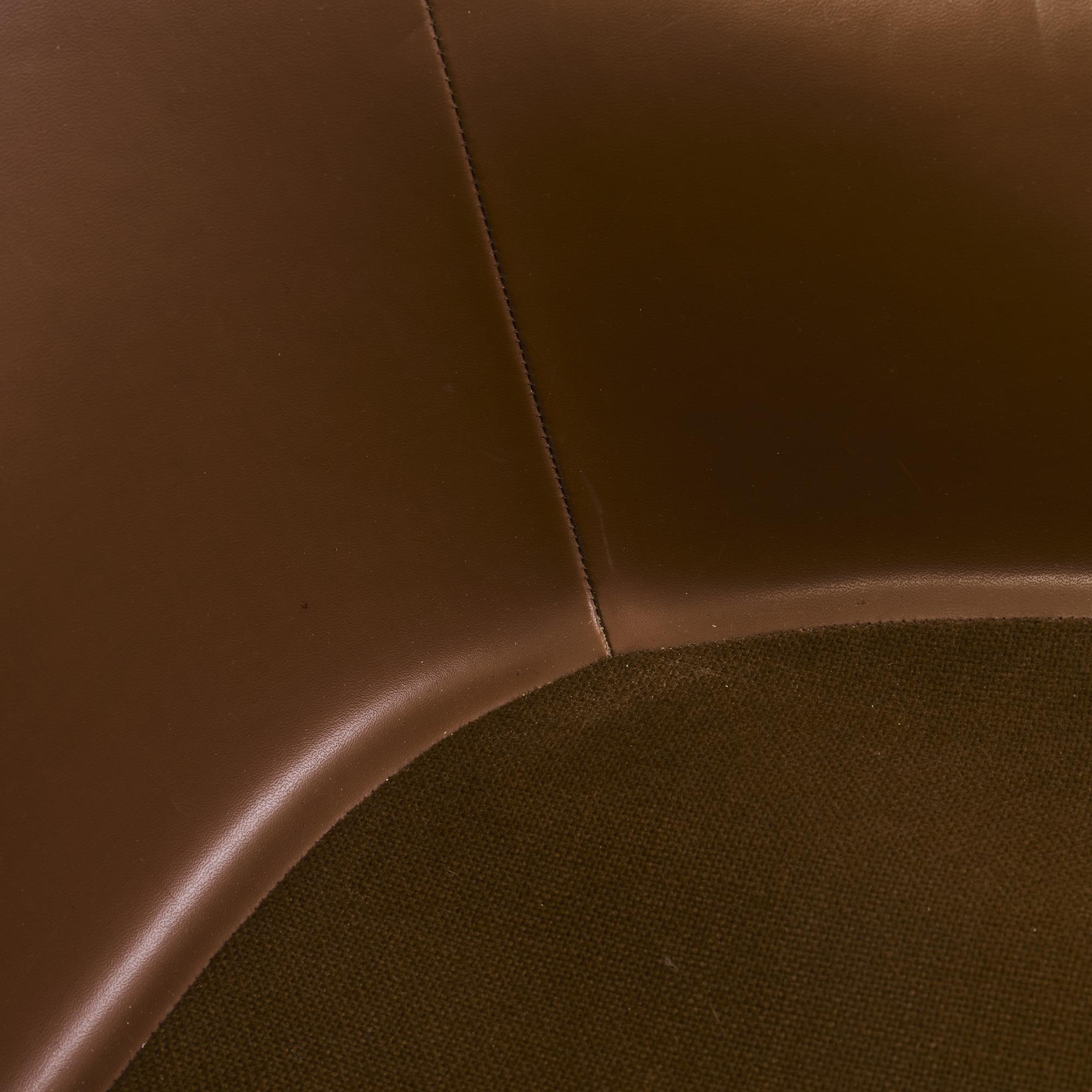 Metallrohr, verchromt, fiberglasverstärkter Kunststoff, beige, braunes Kunstleder, beiger Kunststoff, brauner Textilbezug.