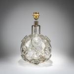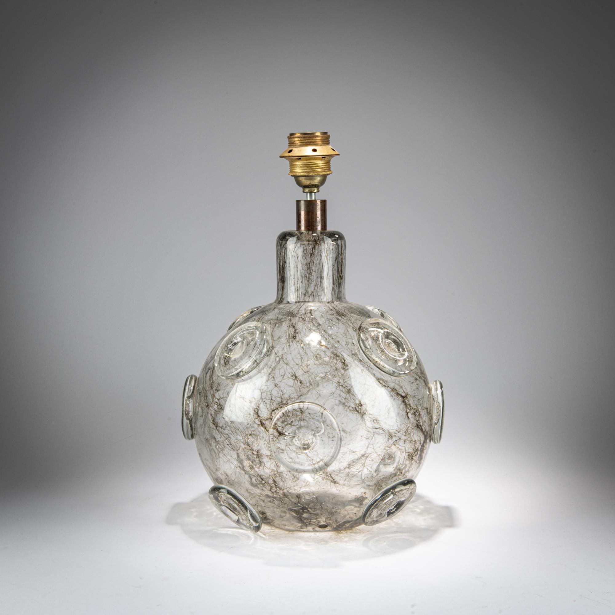 Überfangglas, farblos, eingeschmolzene metallische Fäden, Messingmontierung.