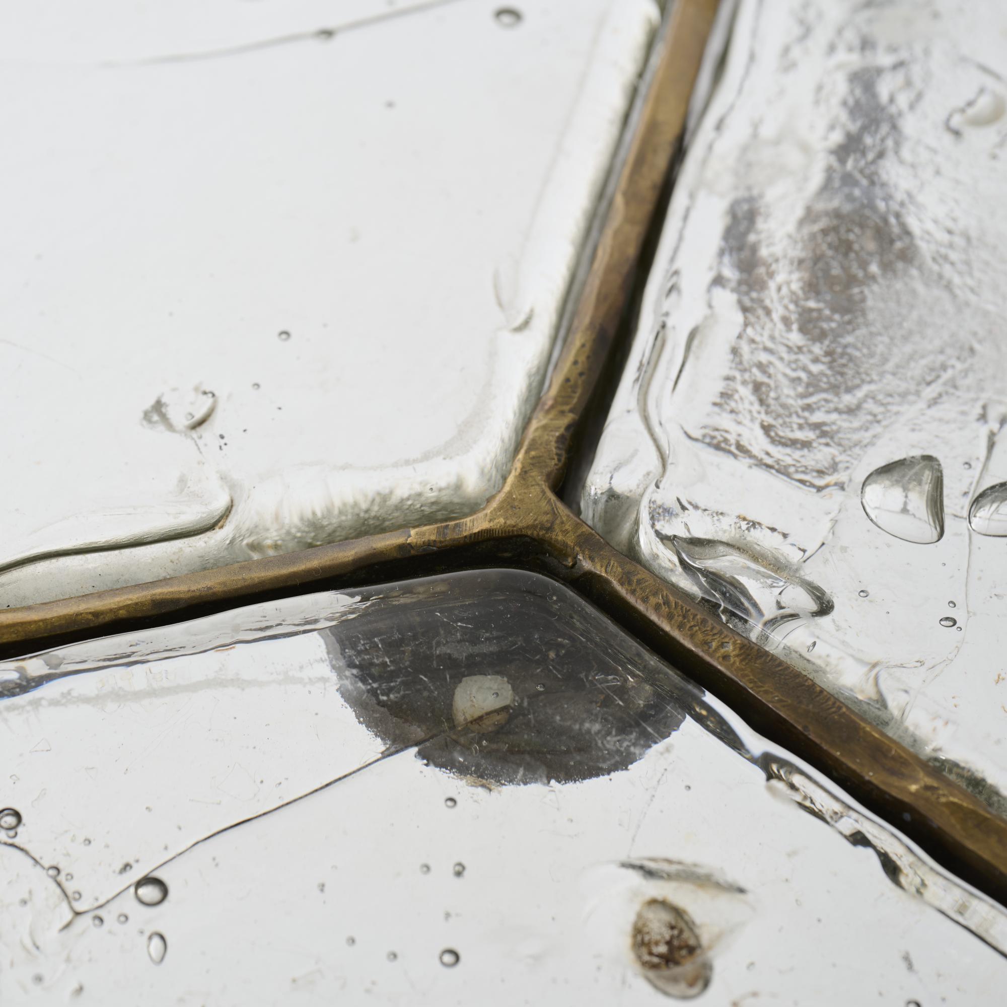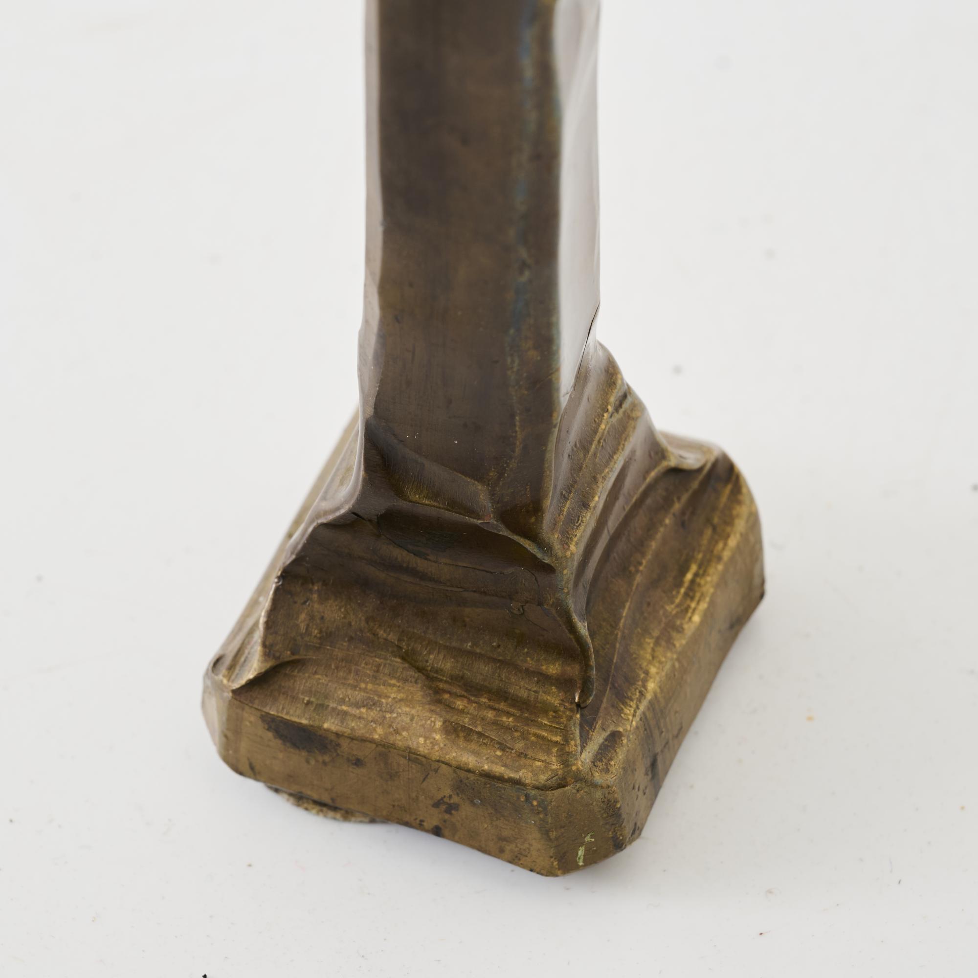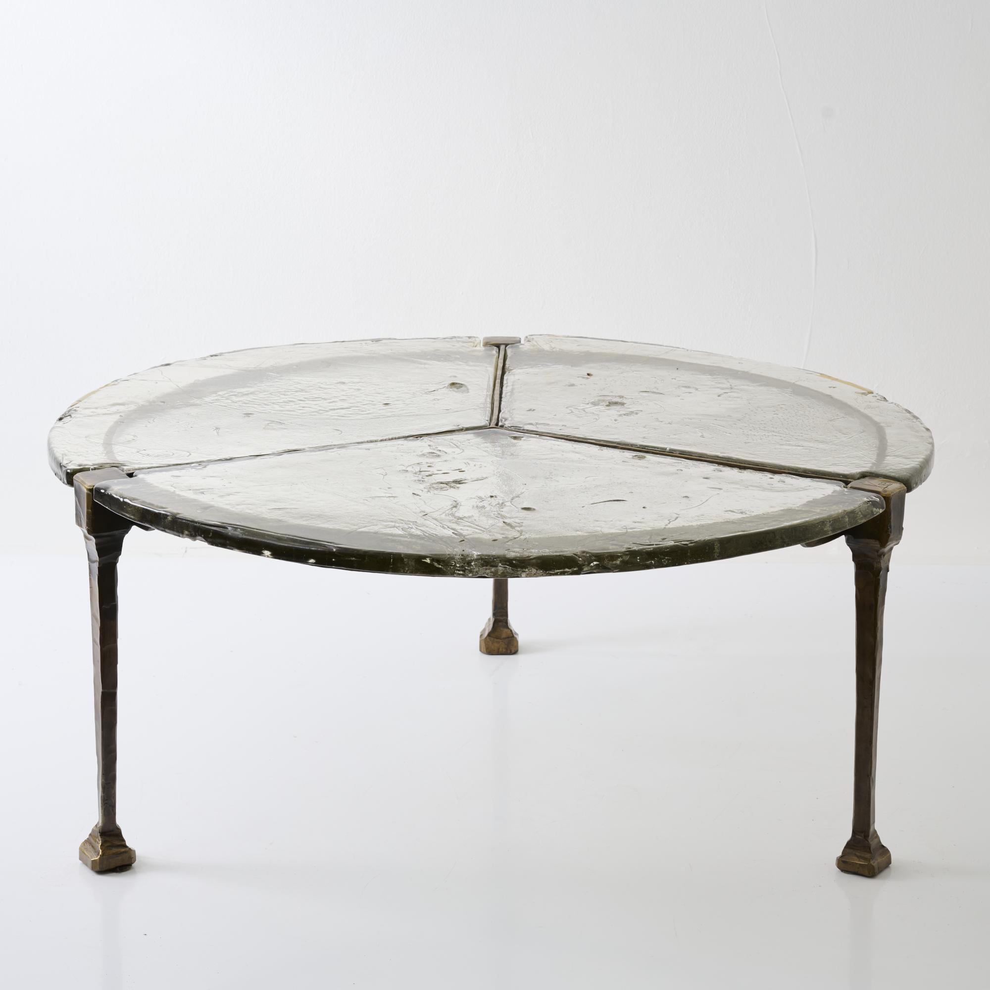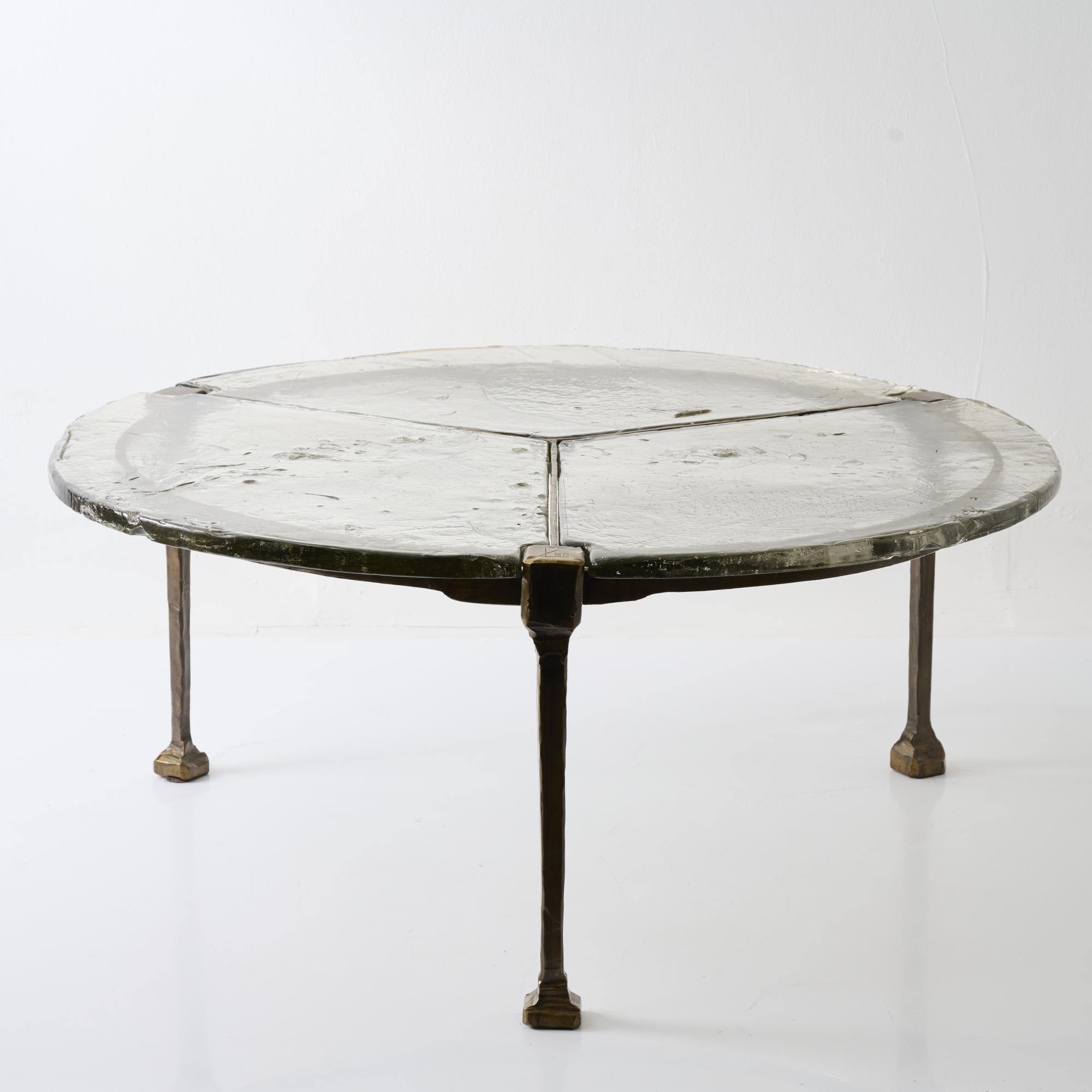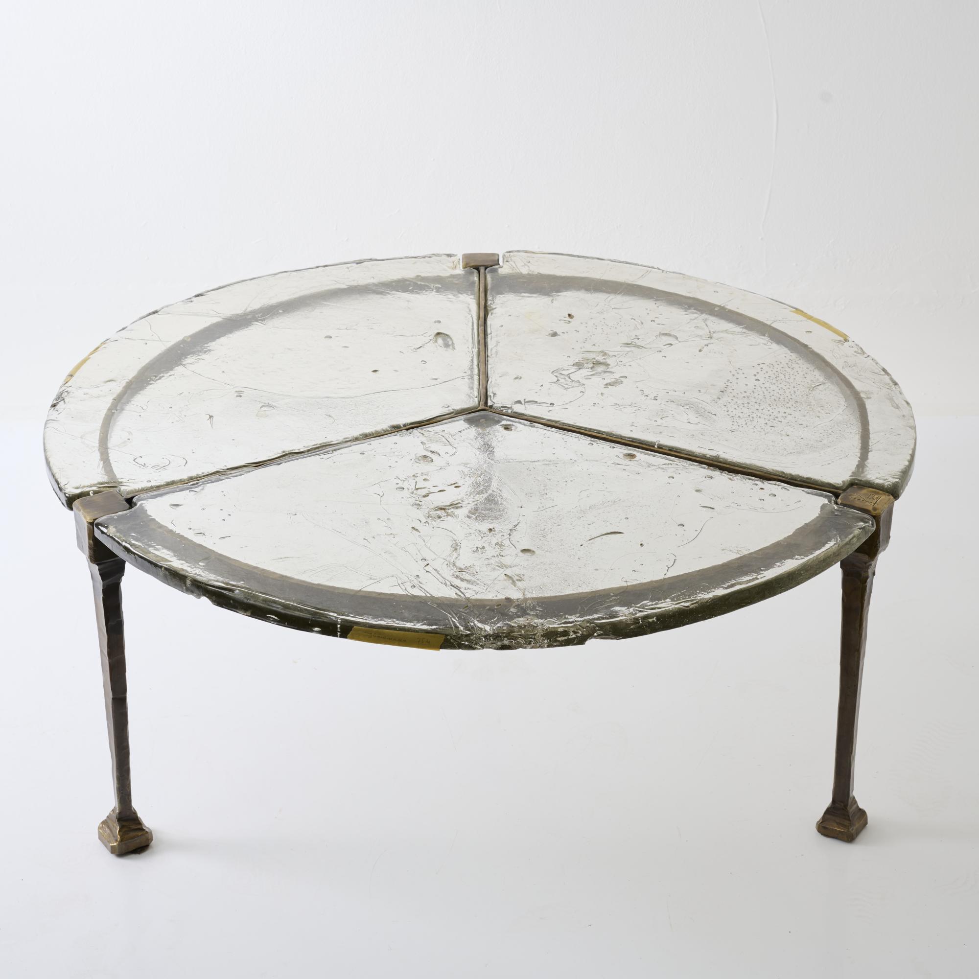 Bronze, geschmiedet, dunkel patiniert, blasiges Gussglas.