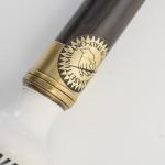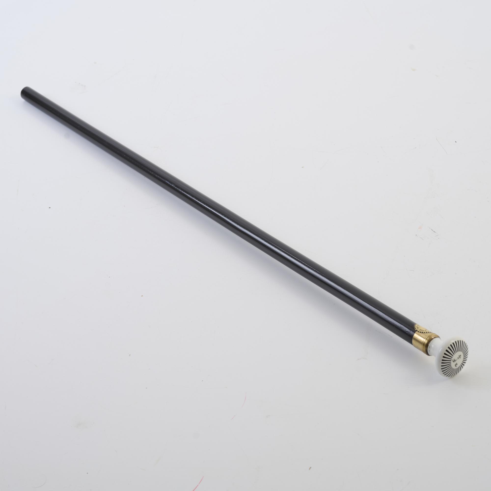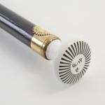 Holz, schwarz, weiß lackiert, schwarz lithographiert, Messingrohr.