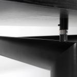Metallrohr, schwarz lackiert, Eschenholz, schwarz lackiert.