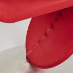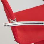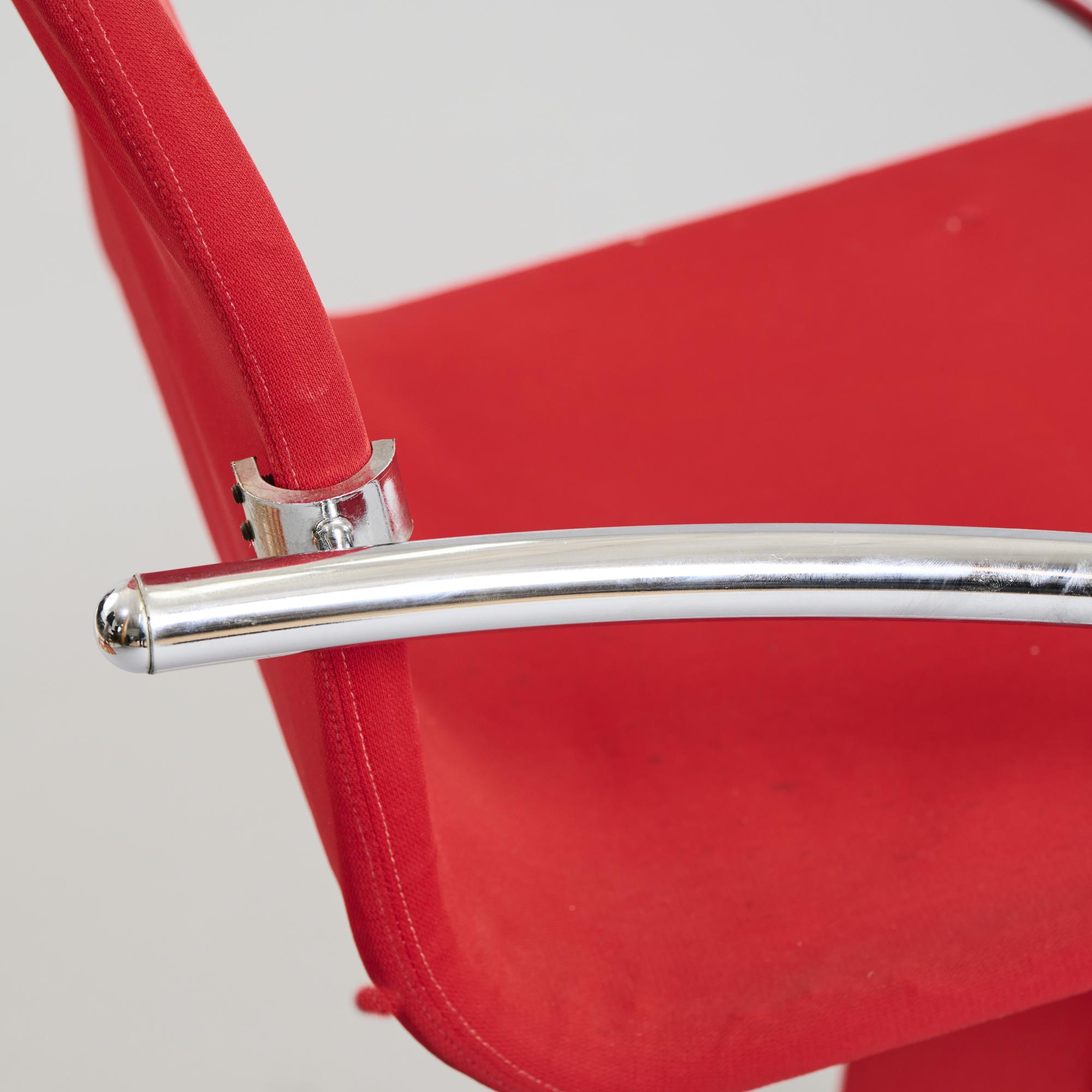 Metallrohr, verchromt, Aluminiumblech, roter Textilbezug.