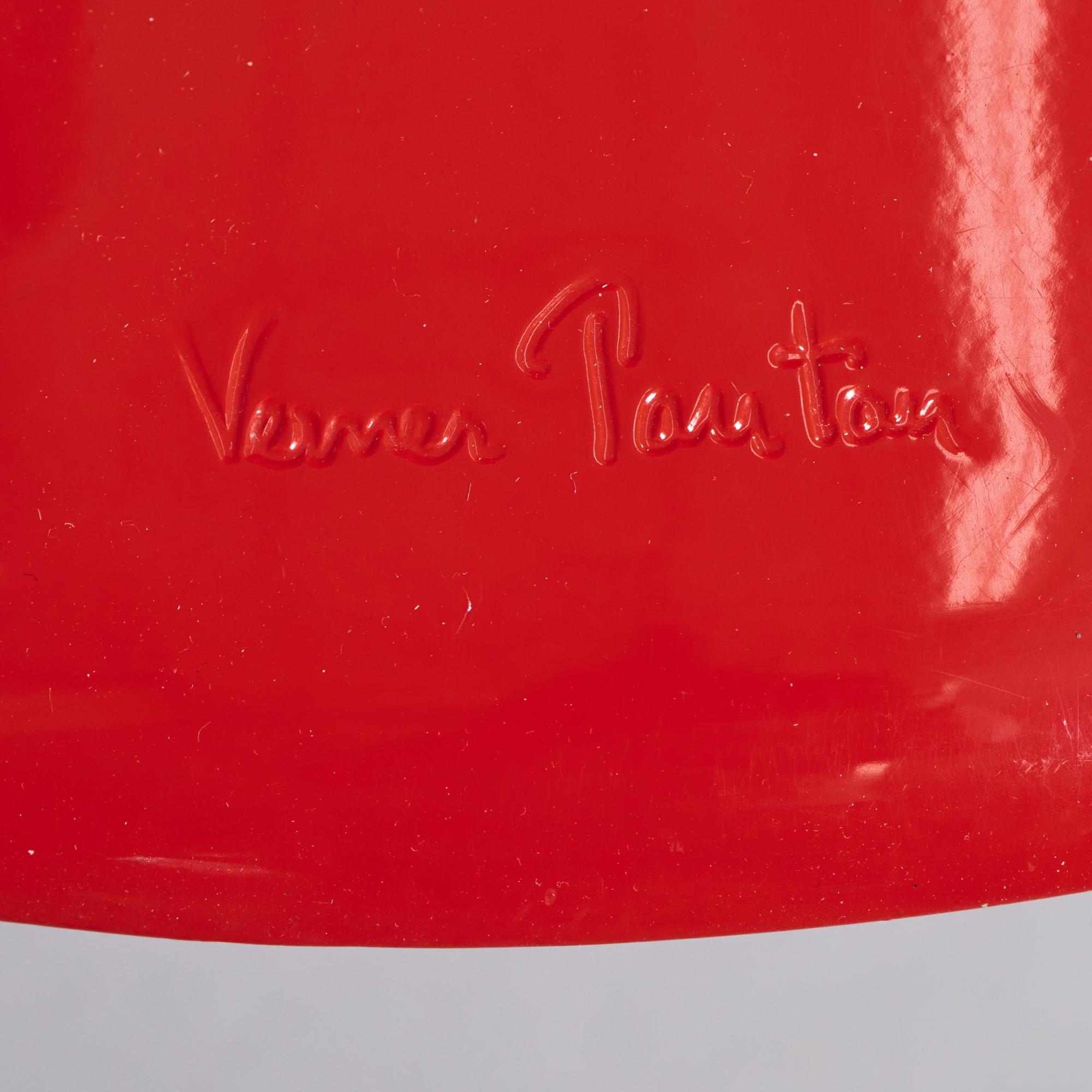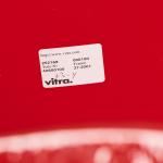 Bez.: Roter Stuhl mit Herstelleraufkleber, Faksimile-Signatur Verner Panton.