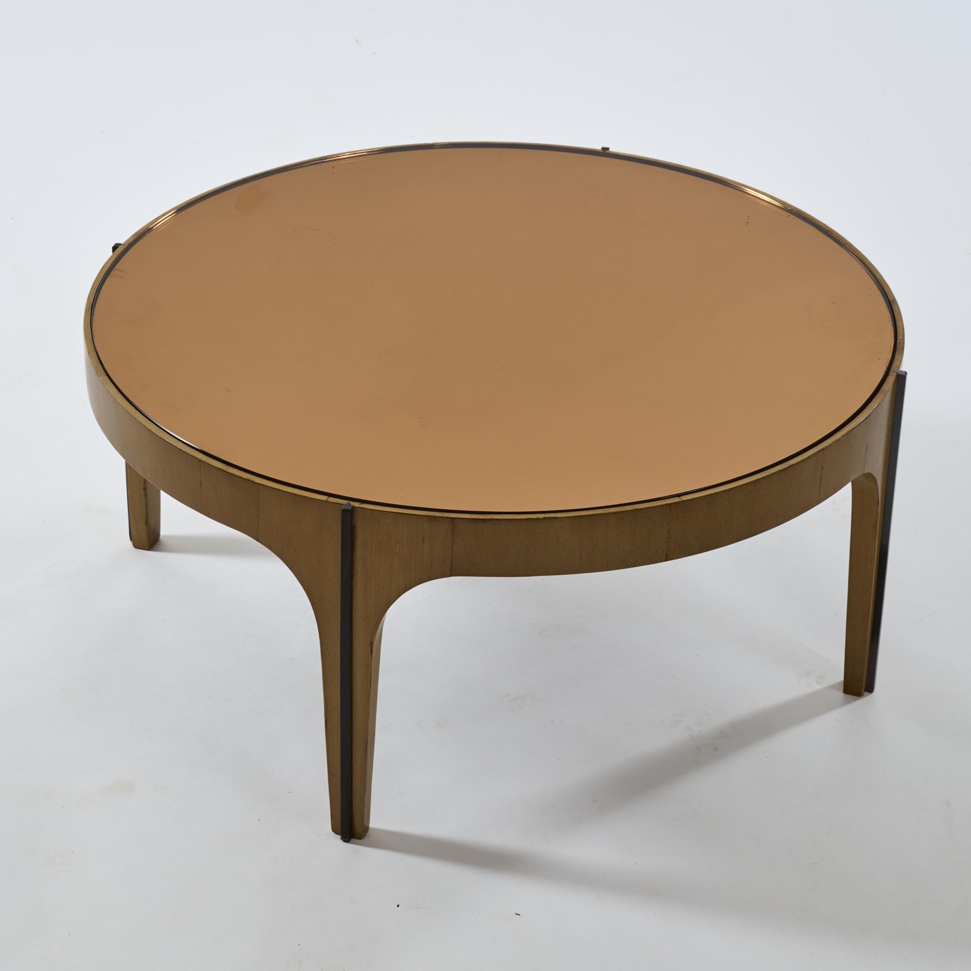 Holz, Schichtholz, lasiert, verspiegelte Glasplatte, kupferfarben.