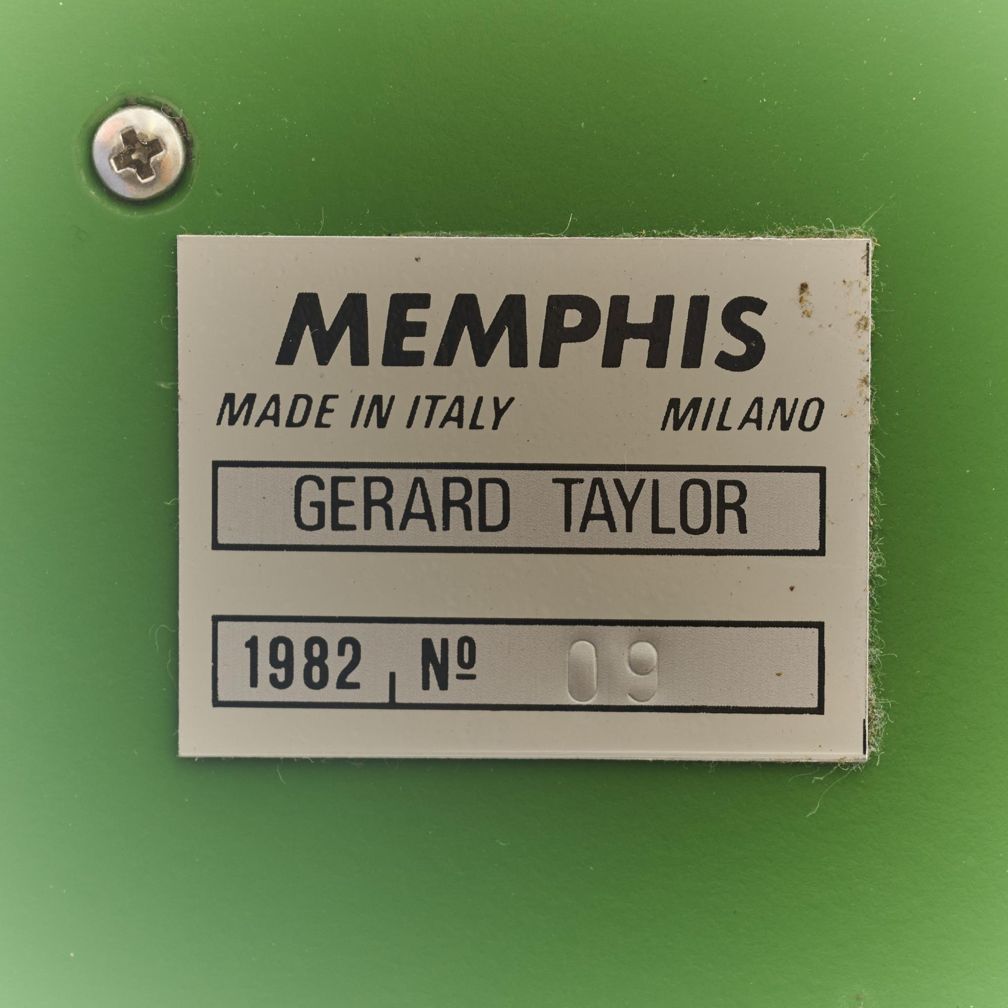 Bez.: Herstellermetallplakette Memphis Milano GERARD TAYLOR 1982, MADE IN ITALY, nummeriert (No 09).