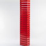 Metallplatten, Metallvierkantrohr, geschwärzt, roter Kunststoff (Acryl), schwarzer Kunststoff.