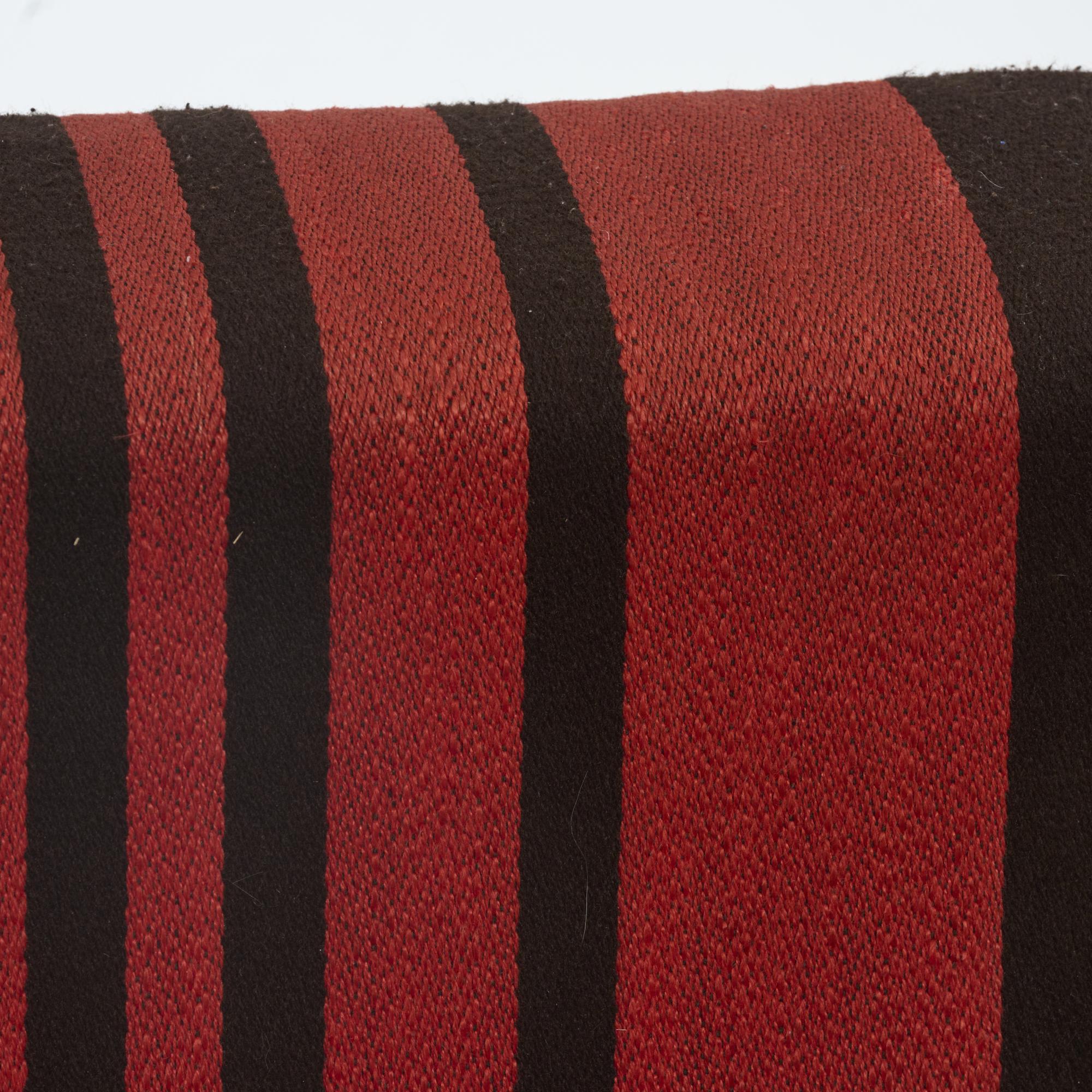 Kunststoff, schwarz, braun-orangefarbener Baumwollstoff.