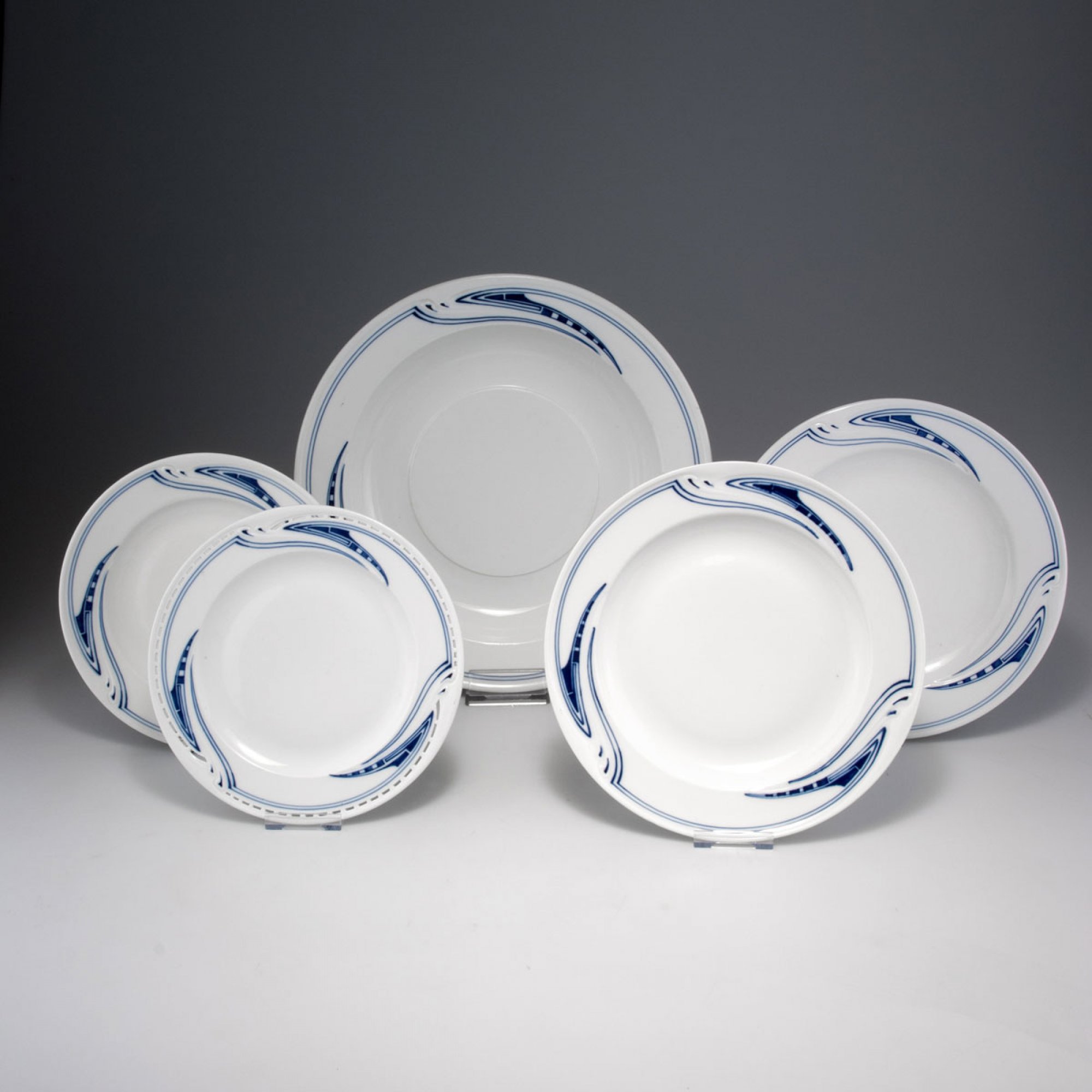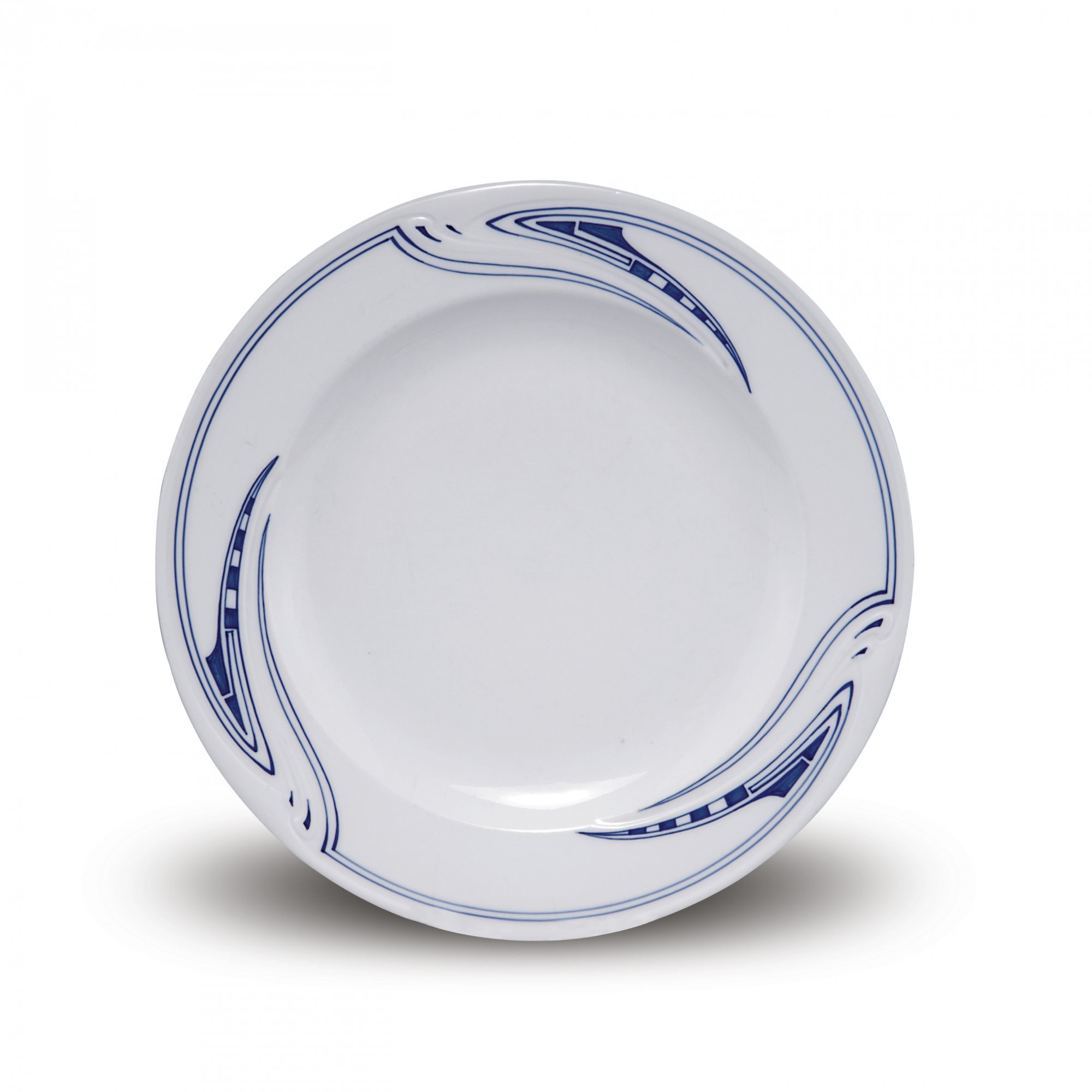 Rund. Dm. 26,4 cm. Ausführung: Königl. Porzellanmanufaktur Meissen, vor 1924. Porzellan, weiß, glasiert, blauer Unterglasurdekor. Bez.: Knopfschwerter 41. (blau, unter Glasur), T1 Künstlersignet (geprägt).