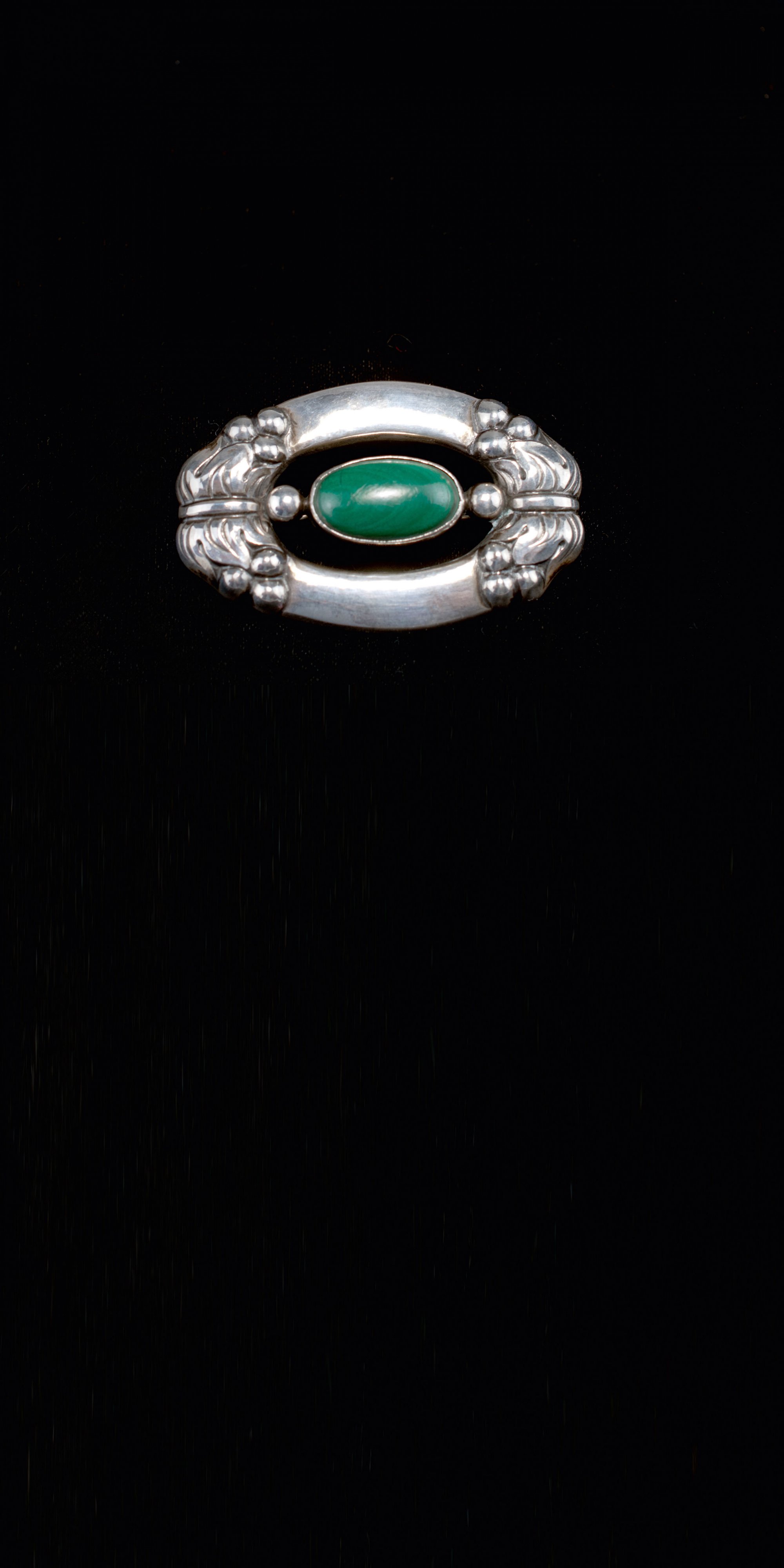 5,4 x 3,5 cm. Silber, Malachit. Gest.: 830S, Werkstattmarke, KBS.