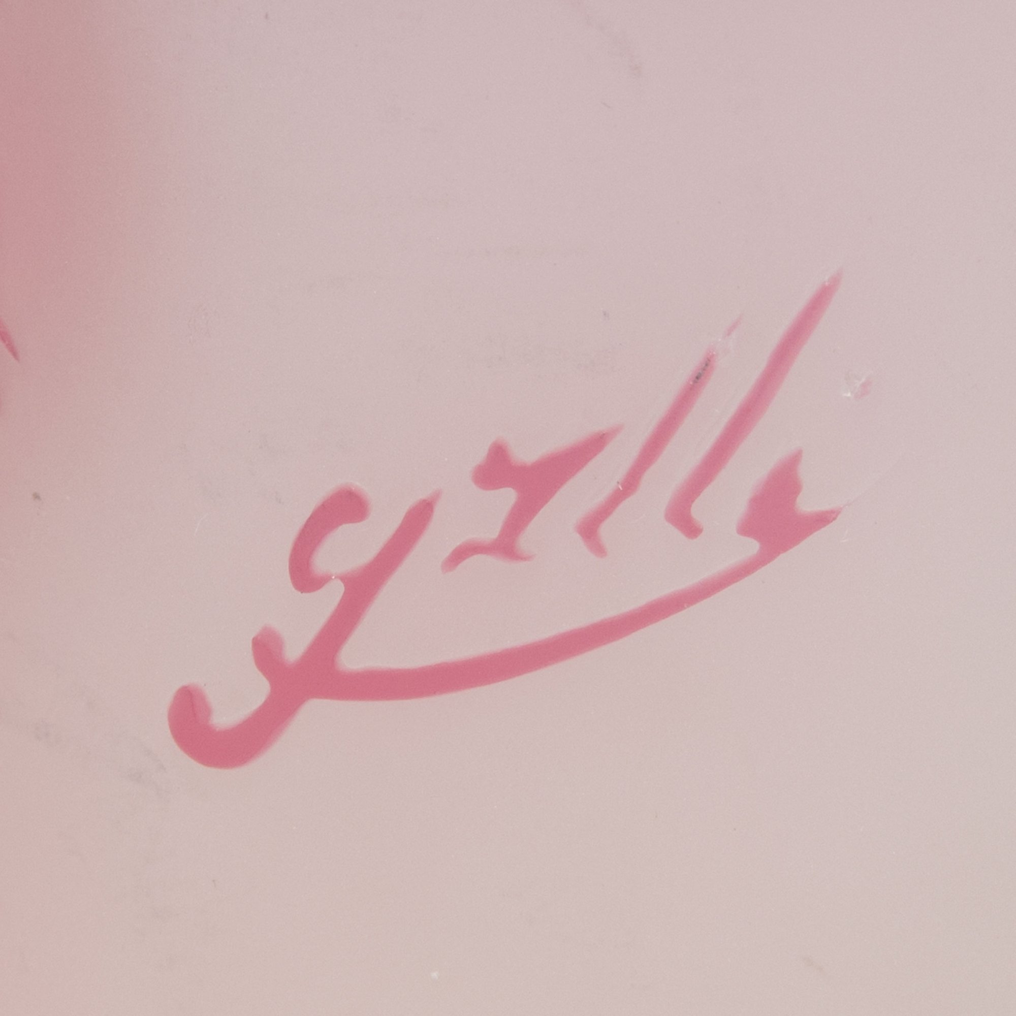Auf eingezogenem, runden Stand spindelförmiger, sich nach oben verjüngender Korpus. H. 24 cm. Überfangglas, farblos, milchigweiß und rosa, matt geätzt. In mehreren Arbeitsgängen geätzter Dekor, Motiv mit Johannisbeeren. Sign.: Gallé (hochgeätzter Schriftzug).