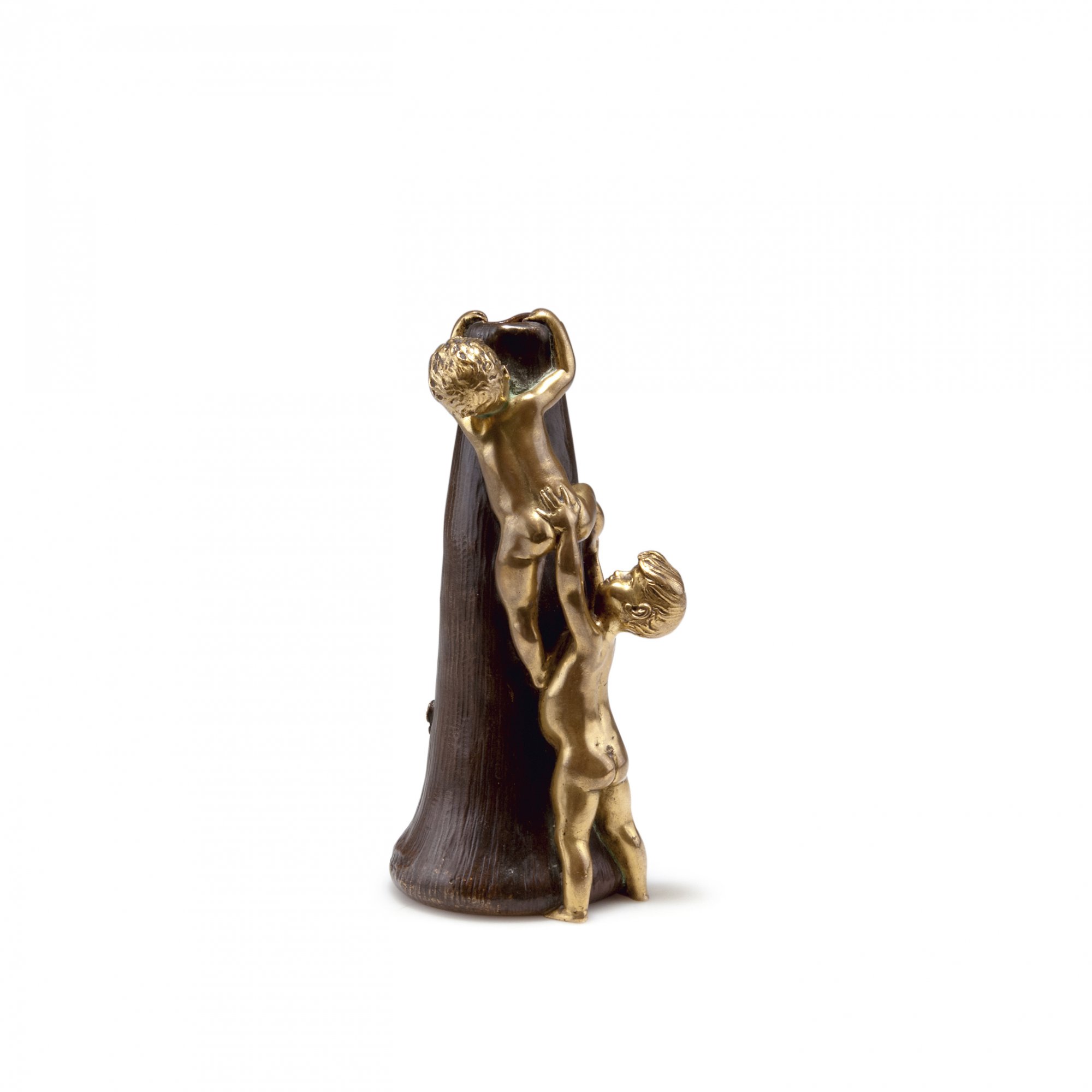 Zwei Buben eine Vase erklimmend. H. 16,4 cm. Guss: Louchet, Paris. Patinierter Bronzeguss. Signiert: H. St. Lerche und bez.: LOUCHET.
