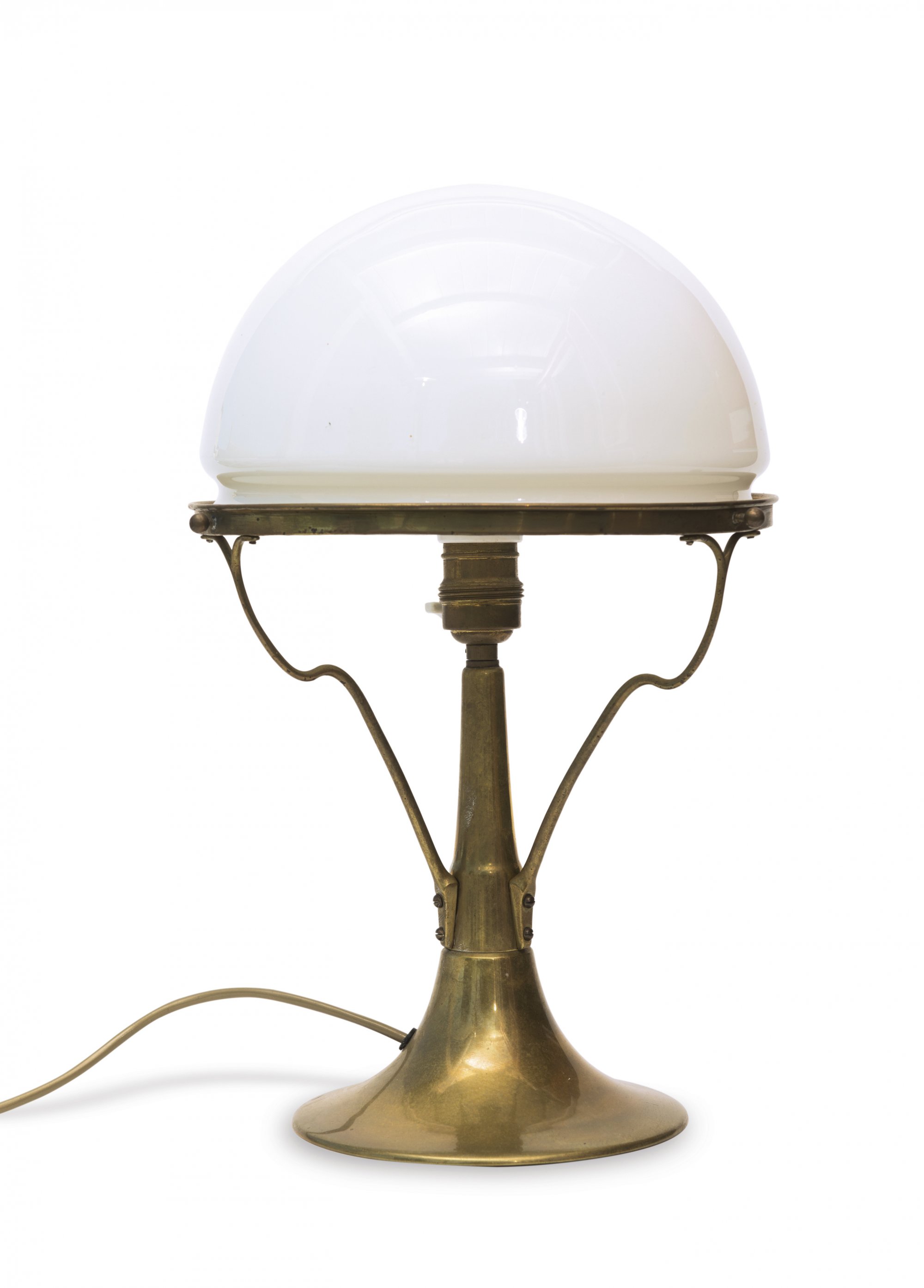 H. 41 cm. Messing, Opalglas.