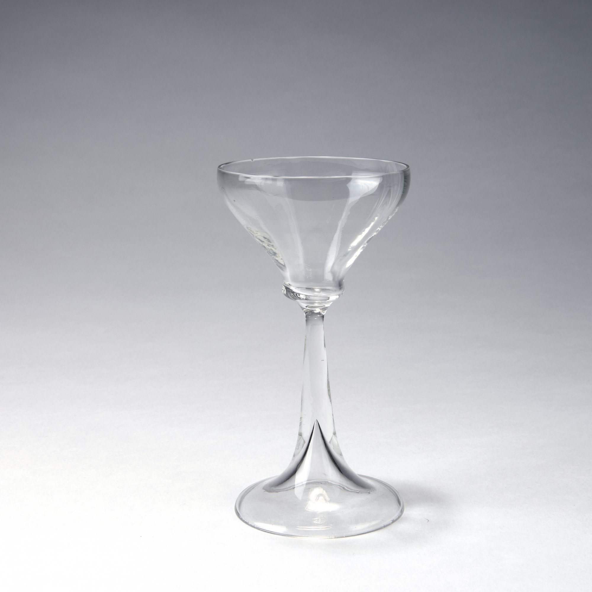 H. 12,6 cm. Farbloses Glas, senkrechte Rippenoptik.