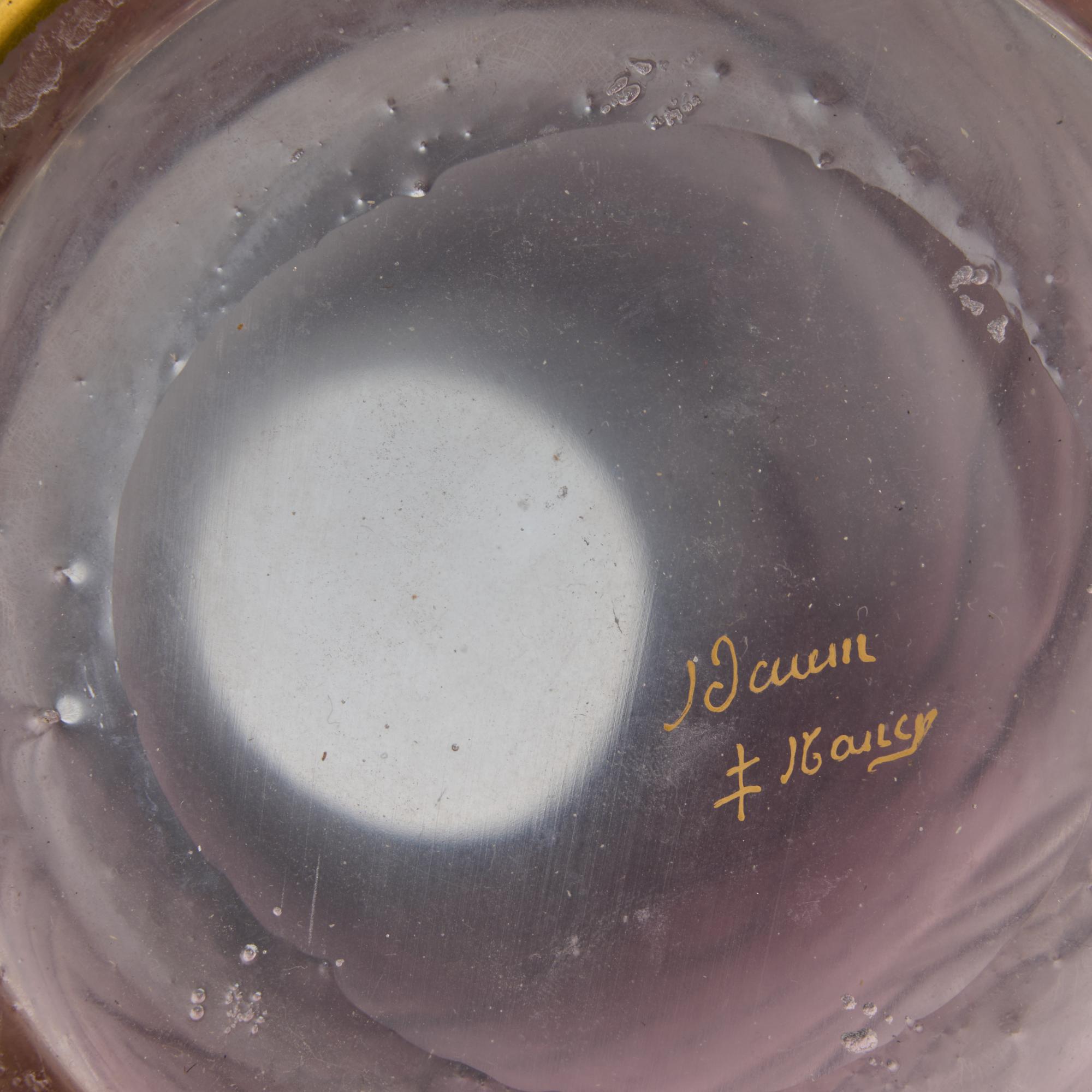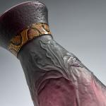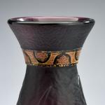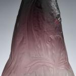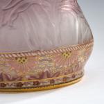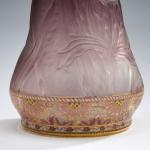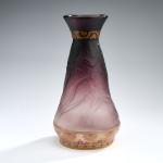 H. 26,8 cm. Glas, farblos, violett verlaufend. Geätzter, polychrom emaillierter und vergoldeter Dekor mit Schwertlilien. Boden sign.: Daum, Lothringer Kreuz, Nancy (Goldsignatur).