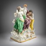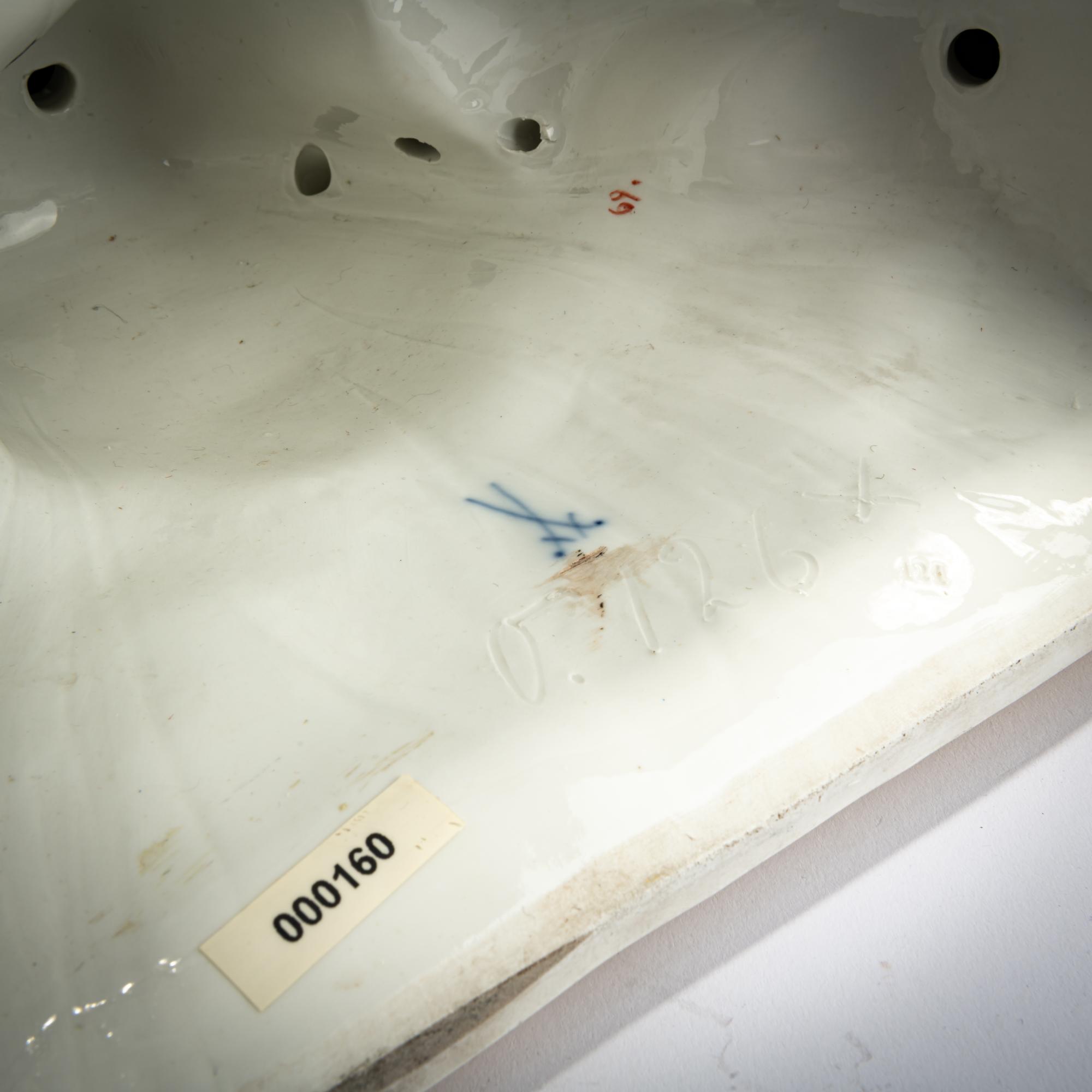 H. 42 cm. Ausführung: KPM Meissen, vor 1924. Porzellan, weiß, glasiert, polychrome Aufglasur mit Gold. Sockel sign.: E. Andresen. Boden bez.: Knopfschwerter (blau, unter Glasur), O 126 (geritzt), 121 (geprägt), 69. (braun, handschriftlich).