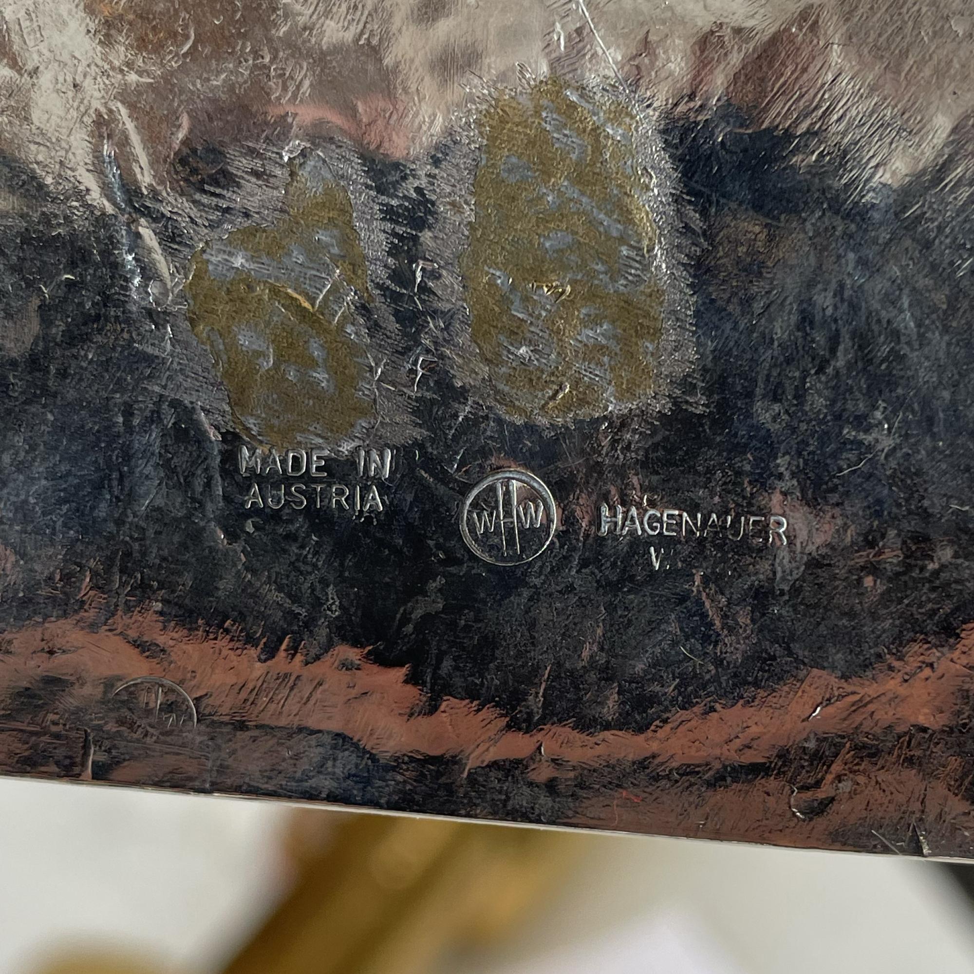 H. 50 cm. Ausführung: Werkstätten Hagenauer, Wien. Messing, verchromt. Bez.: FRANZ (undeutlich), MADE IN AUSTRIA, wHw, HAGENAUER WIEN.