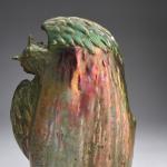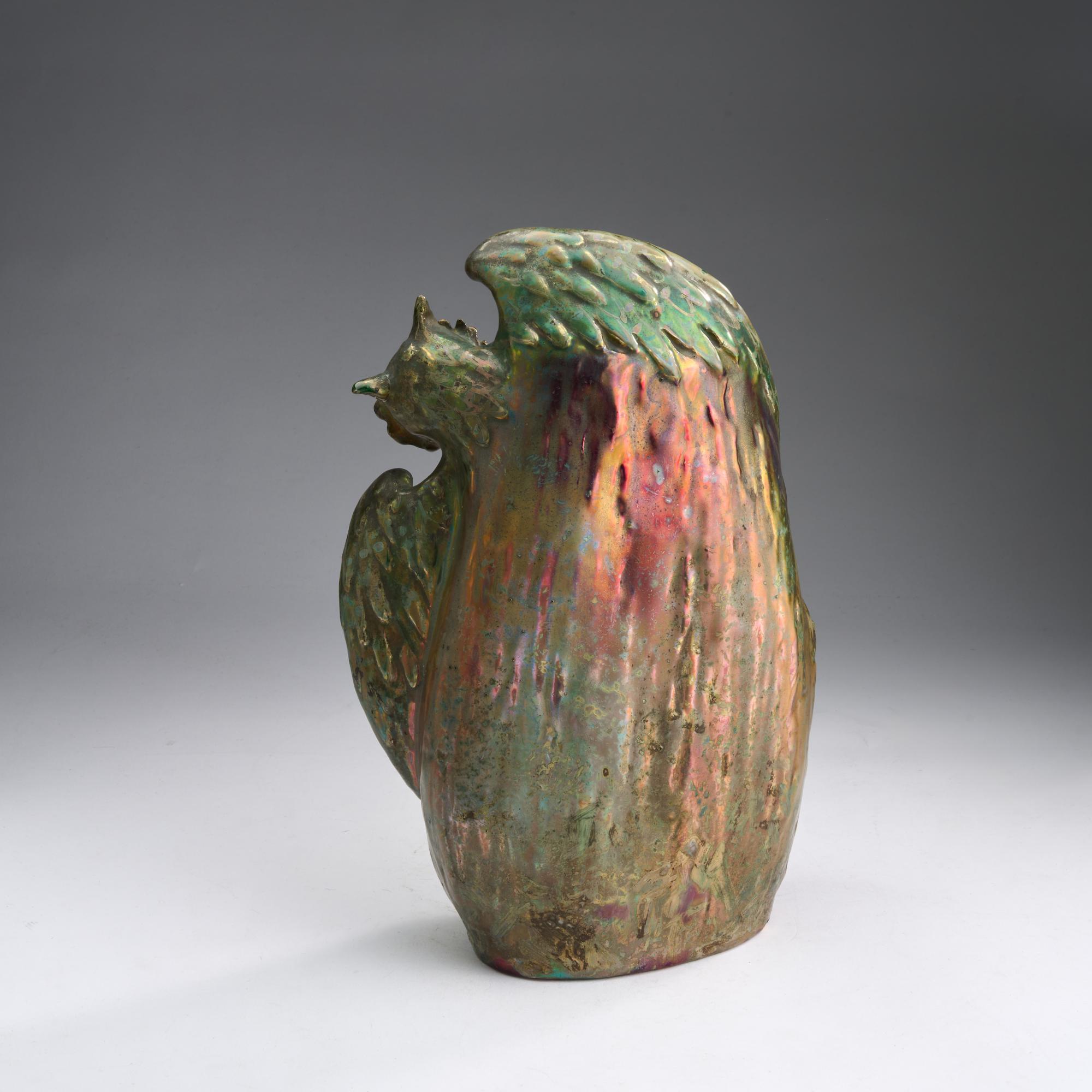 Linkes Ohr der Eule wieder angeklebt. Glasurabplatzungen über dem Stand. Aus der Familie Lévy-Dhurmer.