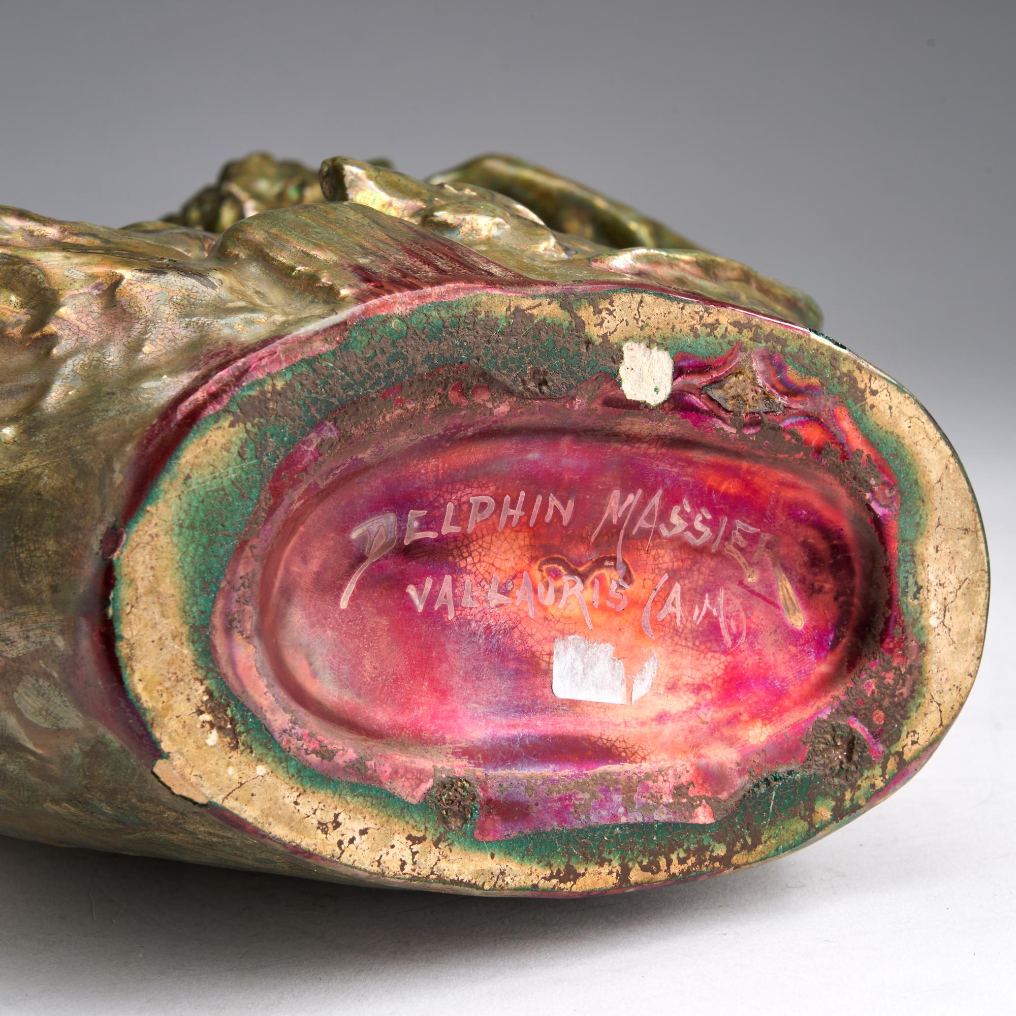 H. 31,5 cm. Steinzeug, grün-goldene Lüsterglasur. Boden sign.: DELPHIN MASSIER VALLAURIS (A.M.).