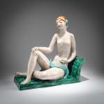 H. 37 cm. Ausführung: Friedrich Goldscheider, Wien. Majolika, polychrom glasiert. Boden bez.: Goldscheider Wien, MADE IN AUSTRIA (schwarze Glasurstempel), 7789 2 (geritzt).