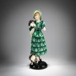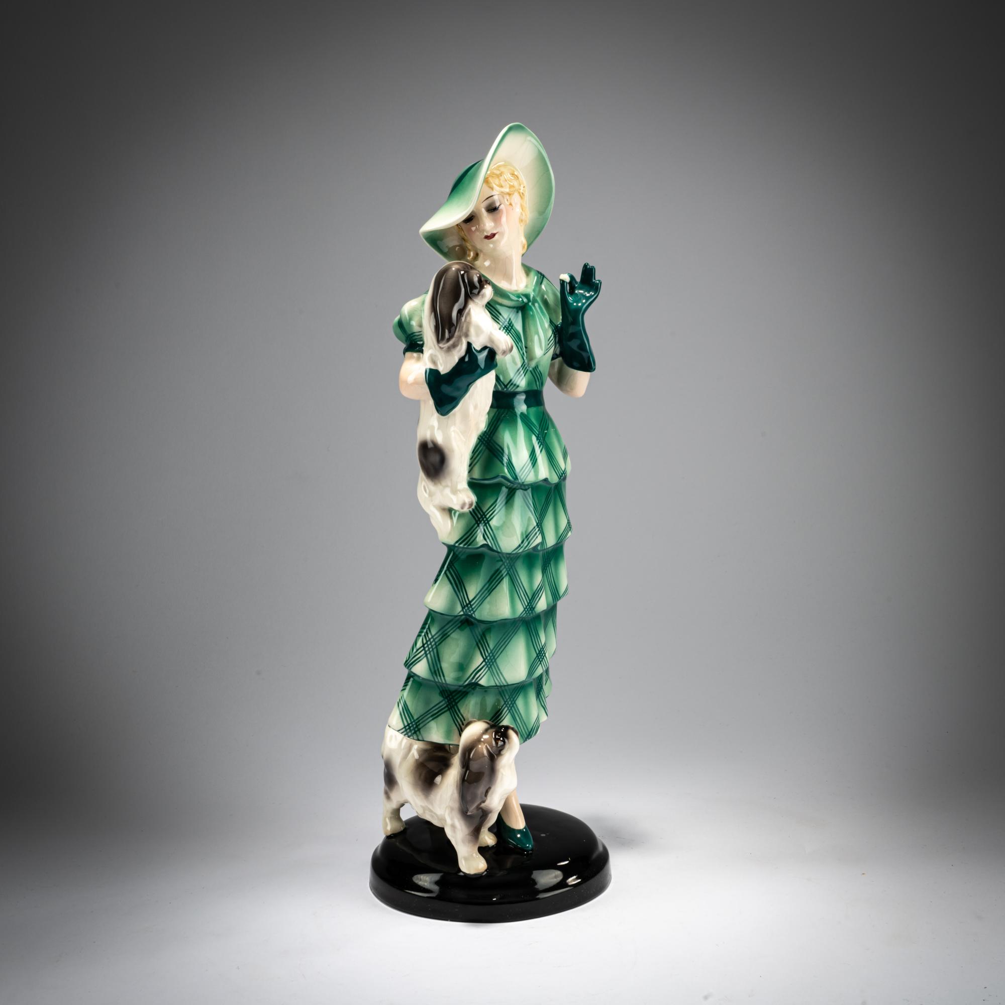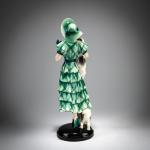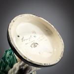 H. 37,7 cm. Ausführung: Friedrich Goldscheider, Wien. Steingut, polychrom glasiert. Sockel sign.: Lorenzl (geprägt). Boden bez.: MADE IN AUSTRIA, Goldscheider Wien, Lorenzl (schwarze Glasurstempel) 7037 22 16 (geprägt).