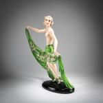 H. 39.5 cm. Ausführung: Friedrich Goldscheider, Wien, 1938-45. Steingut, polychrom glasiert. Boden bez.: MADE IN GERMANY, Goldscheider Wien (schwarze Glasurstempel) 8461 31 66 (geprägt), handschriftliche Zeichen (schwarz).
